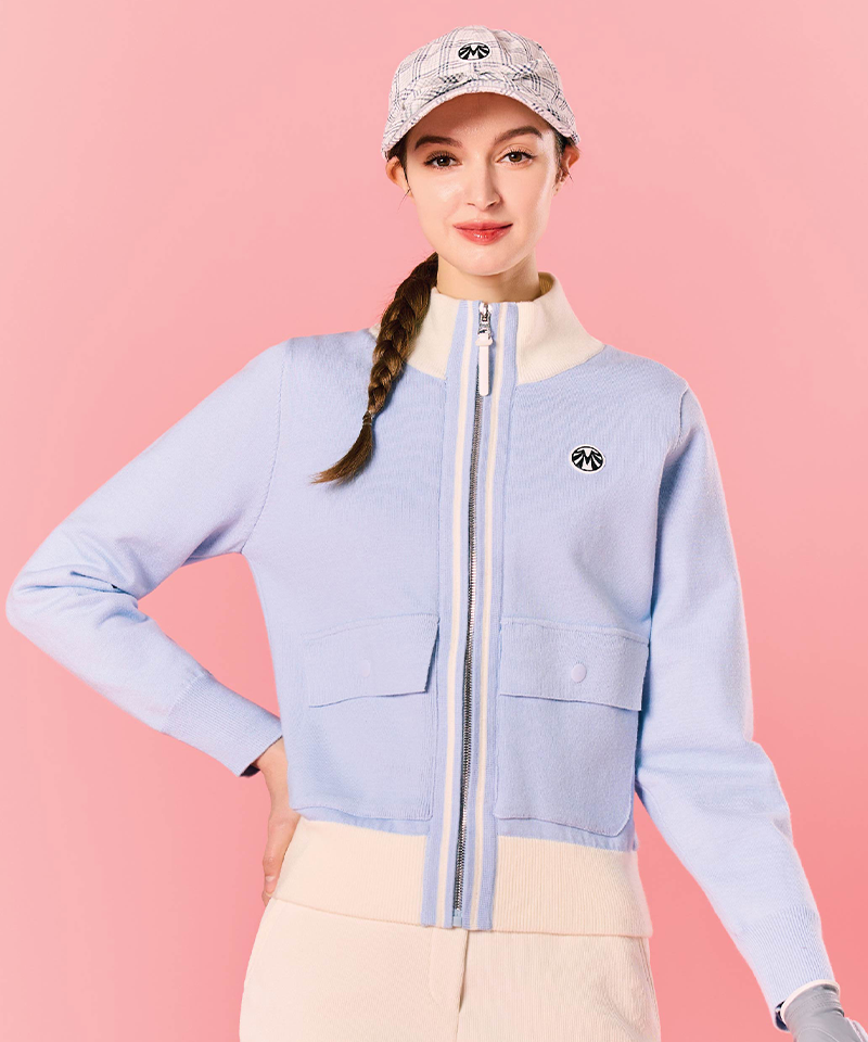 Women's Cashmere Half-Neck Windbreaker Jacket - Sky Blue