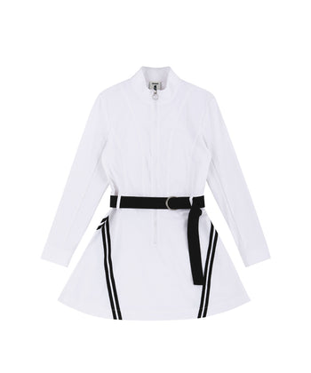 Cool Knit Half Zip-up Short Sleeve Top - White