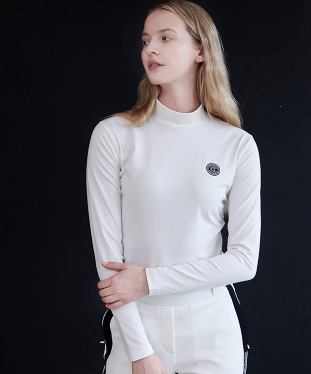 Monday Flow Women's Mockneck Stretch Top - Light Beige