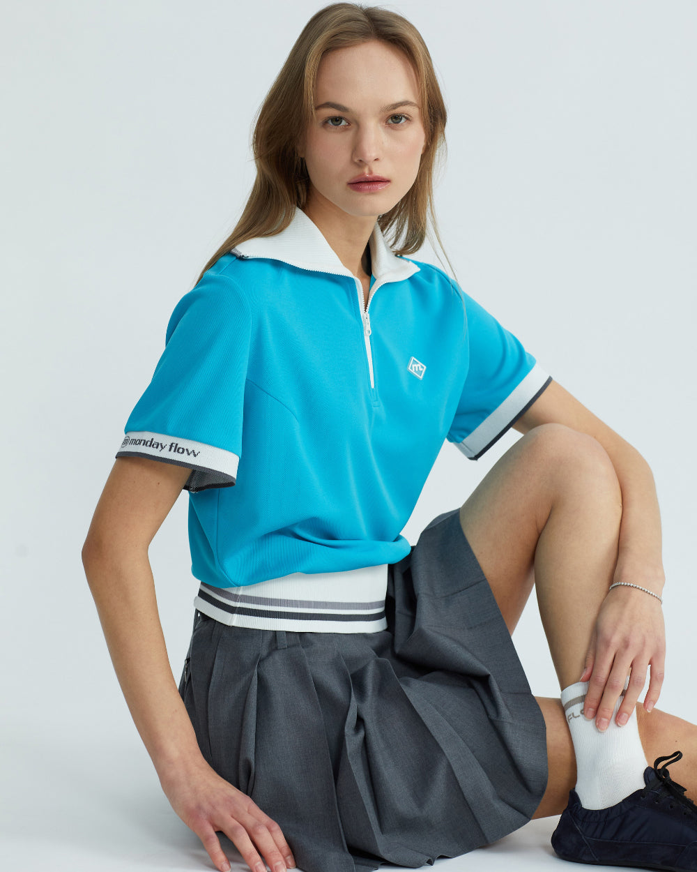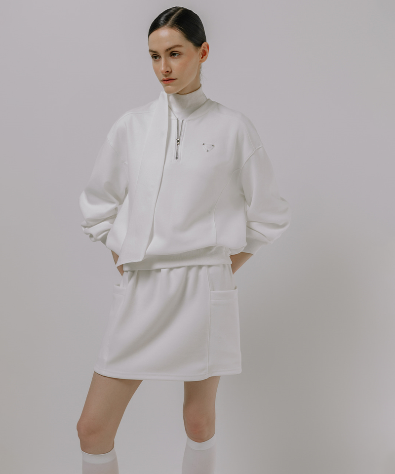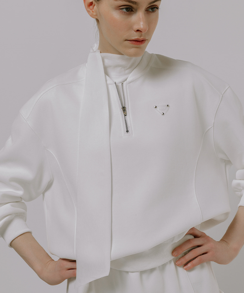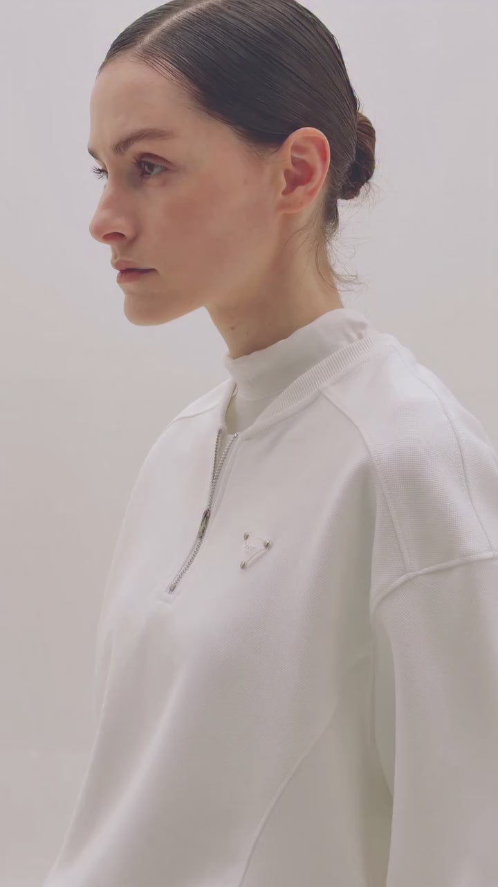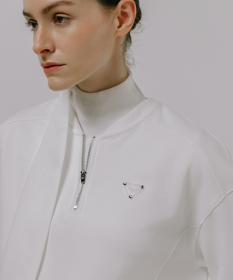 Monday Flow Women's Wide Collar Zip-Up Top - White