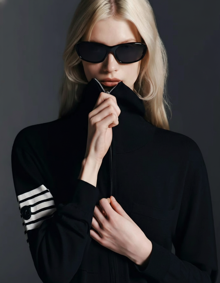 Cashmere Double-Layered Windproof Jacket - Black -