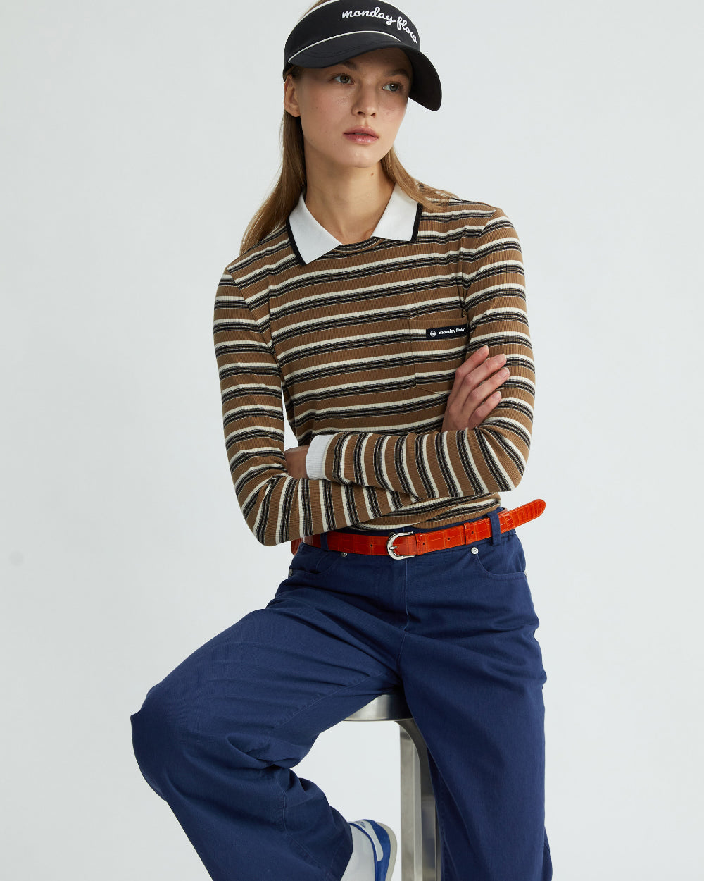 Monday Flow Must-Have Collared Top (Striped) - Brown -