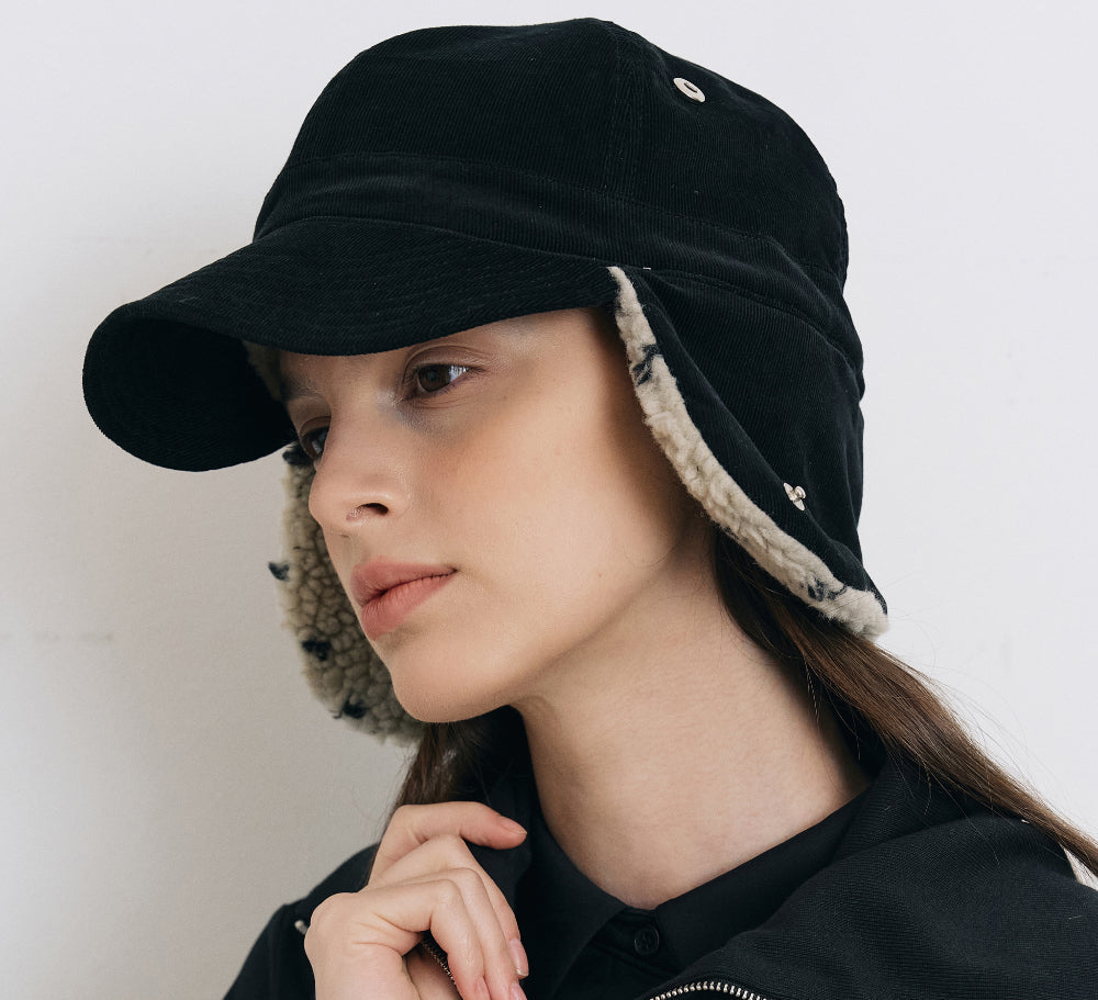 Dot Boa Earflap Cap Black