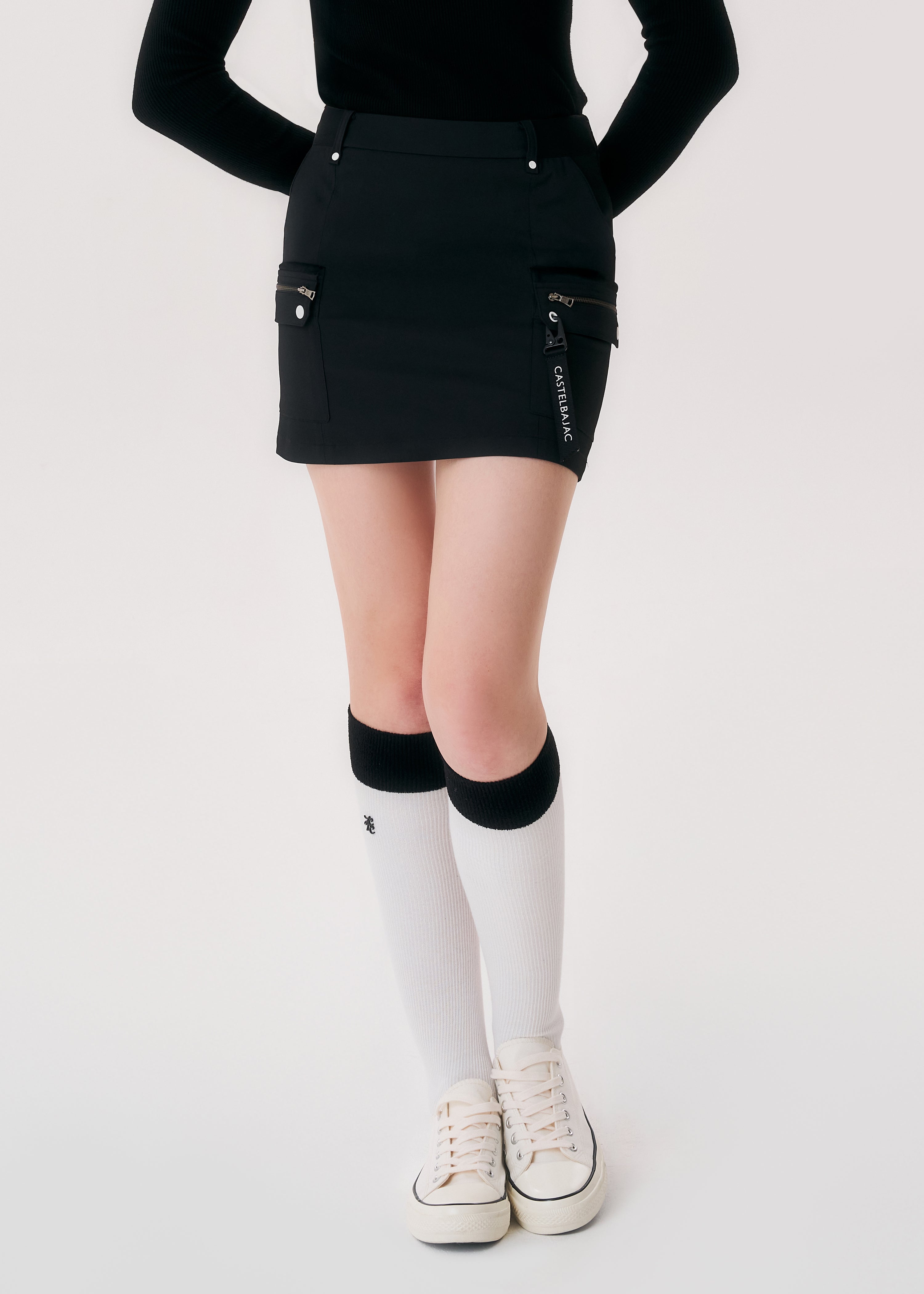 Banding Hole Leather Skirt - Black