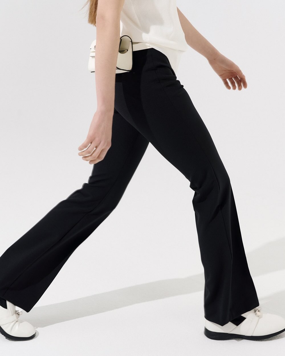 Front Slit Semi Bootcut Pants That Make Your Legs Look Longer - Black -