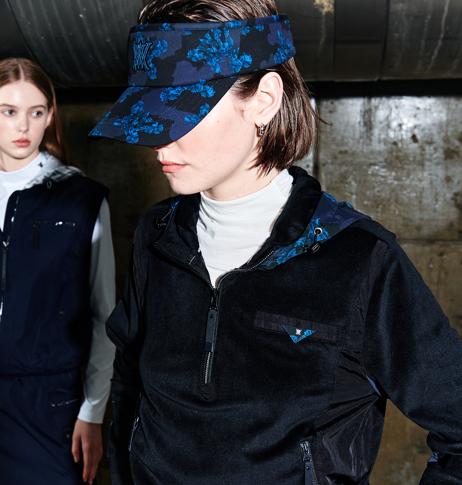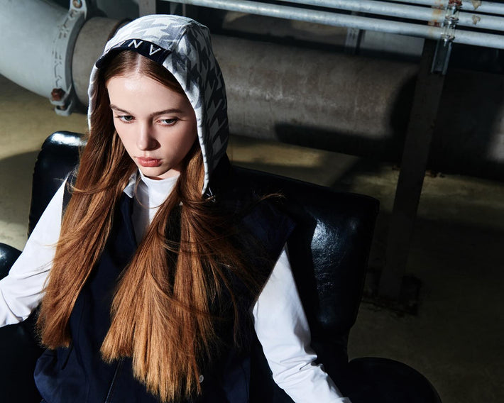 OBER Golf Hairy Color Block Hooded Zip-Up Ivory