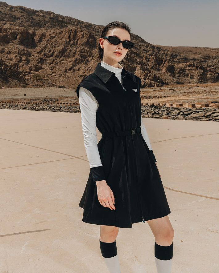 Anell Golf Scarf Slit Cashmere Knit Dress - Black