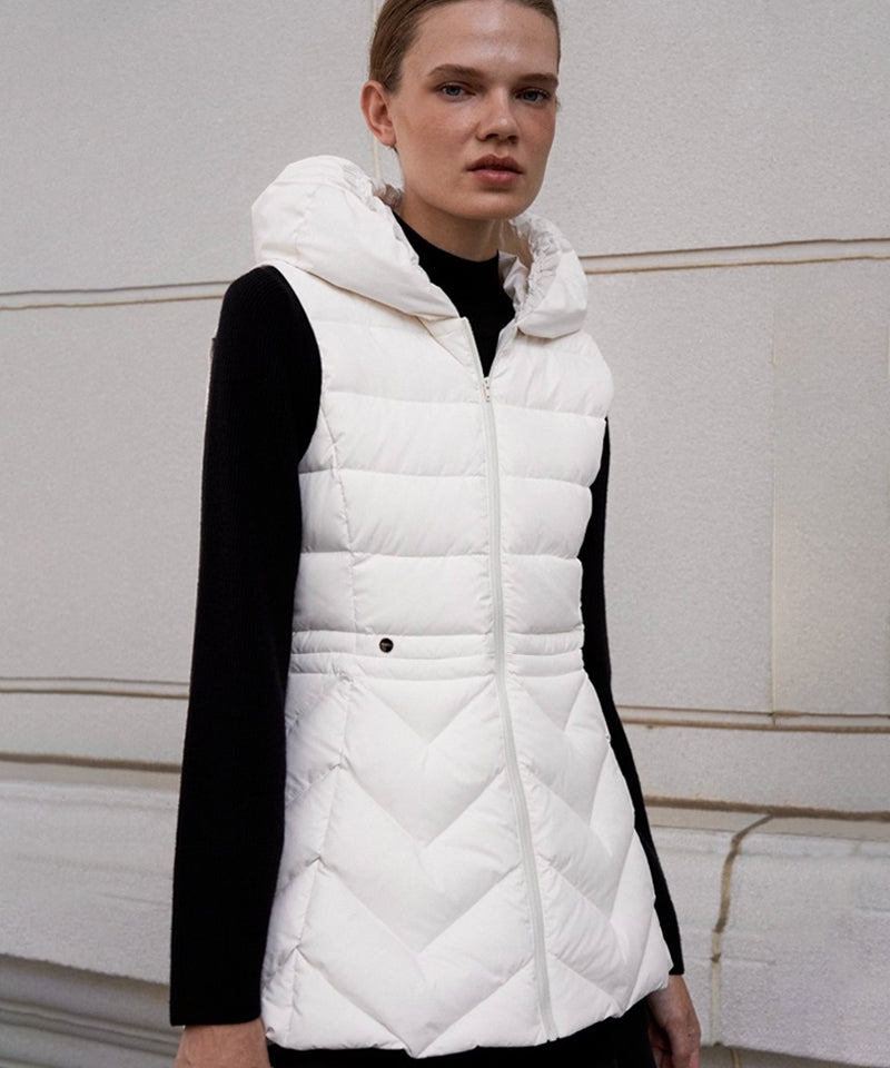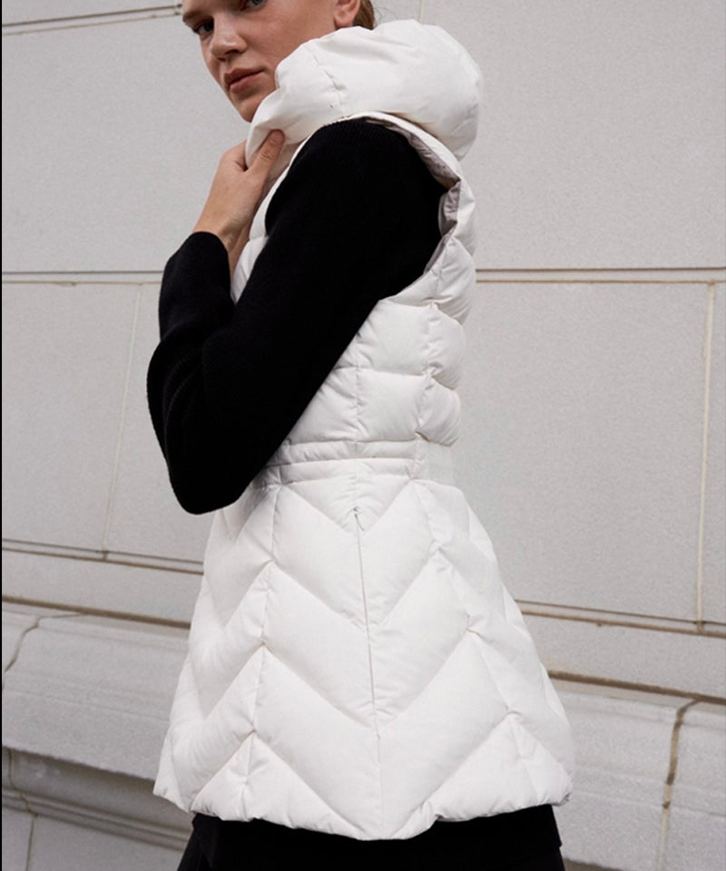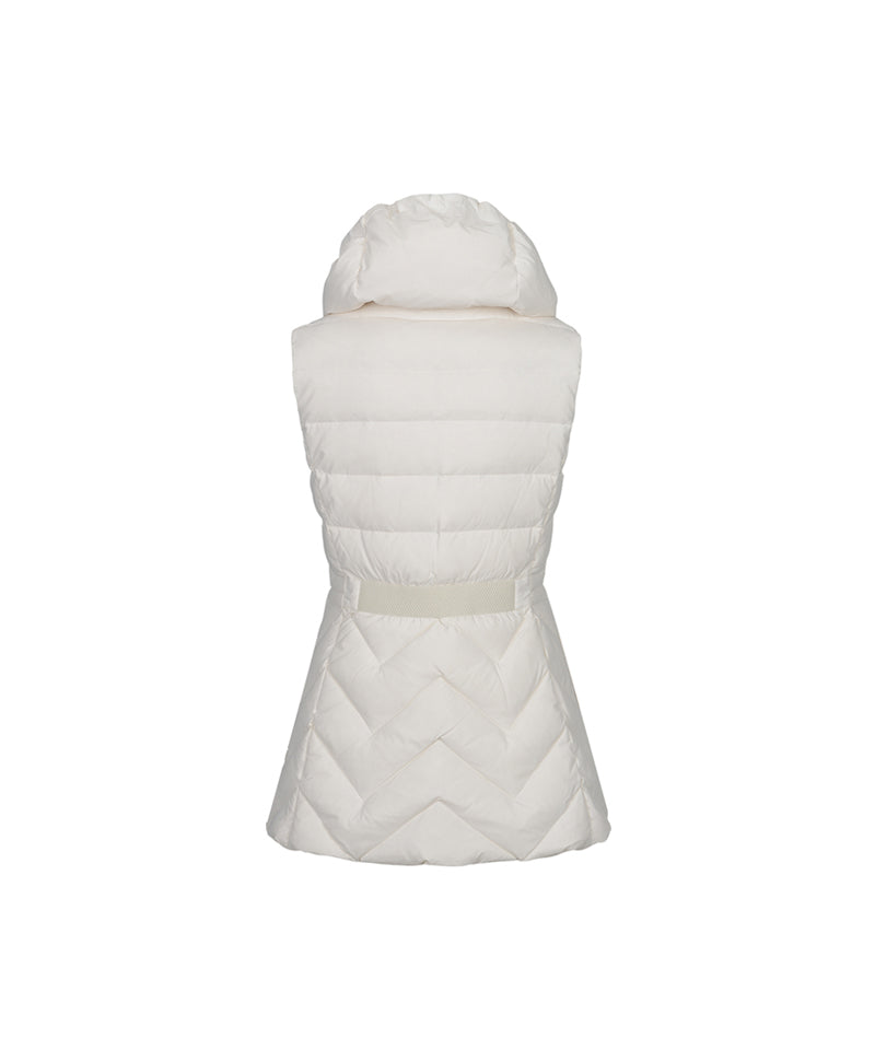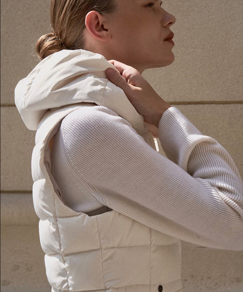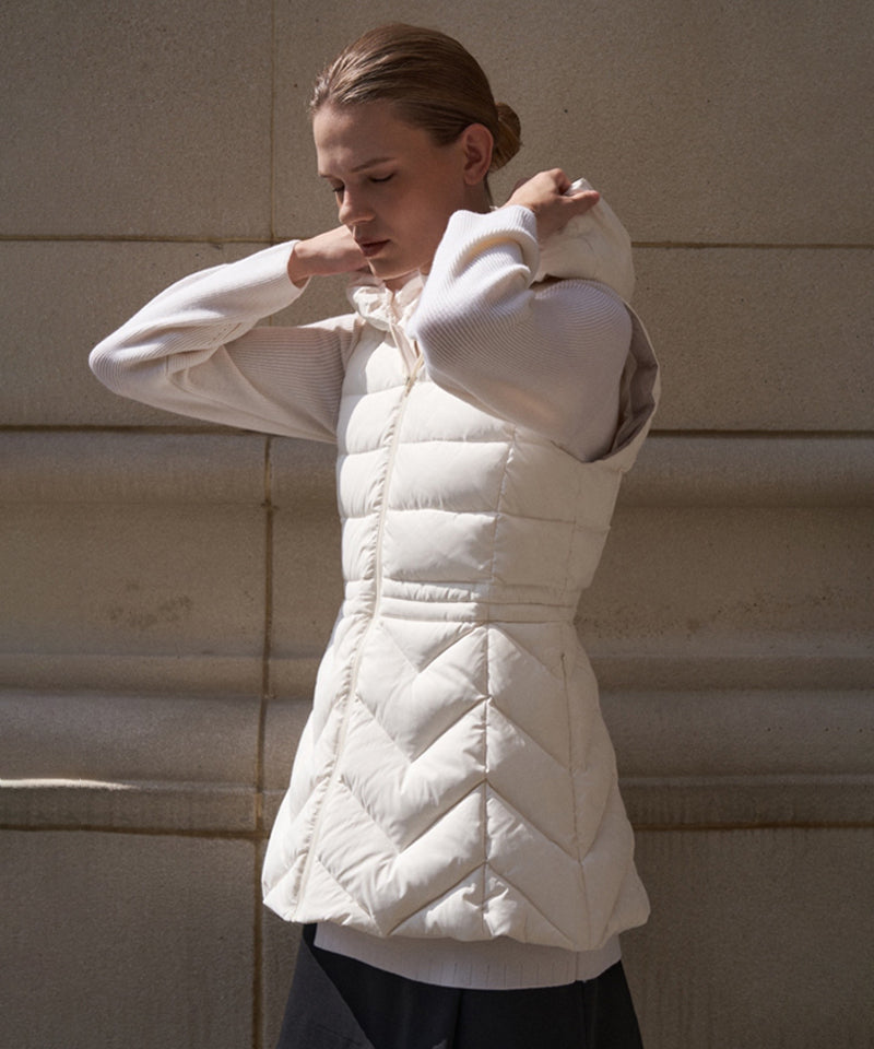 Experience the activity of padding. Padded neck warmer design that goes up to the neckline. In the chilly season,  it blocks the wind at the same time provides warmth. Feminine silhouette that emphasizes the waistline, It creates an elegant look in winter. Reduced weight and increased warmth volume filled with duck down.