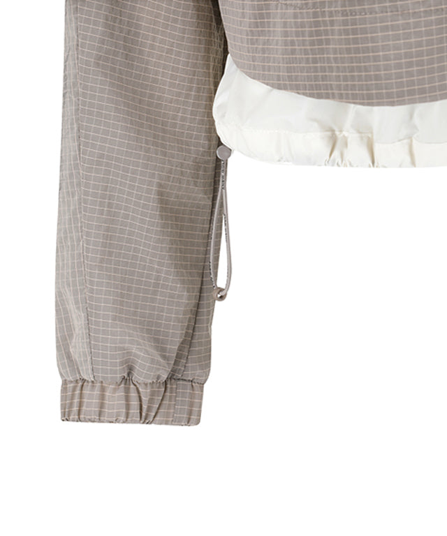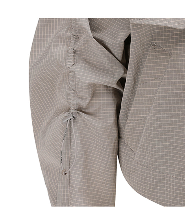 Ripstop lightweight fabric windbreaker jacket. Can be used both in the field and in everyday life using lightweight materials. Added design as well as UV protection by inserting a visor on the hood. Circumference adjustable with drawstrings at sleeves and bottom. An item with good activity and a point when blowing in the wind with matching pleats on the back.