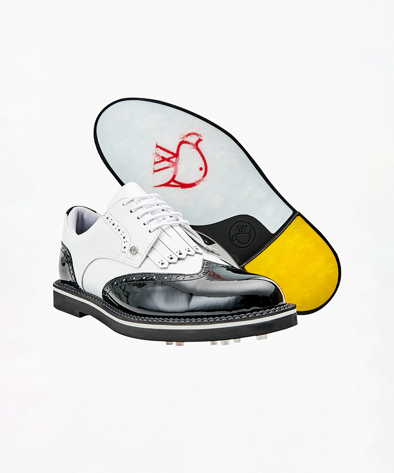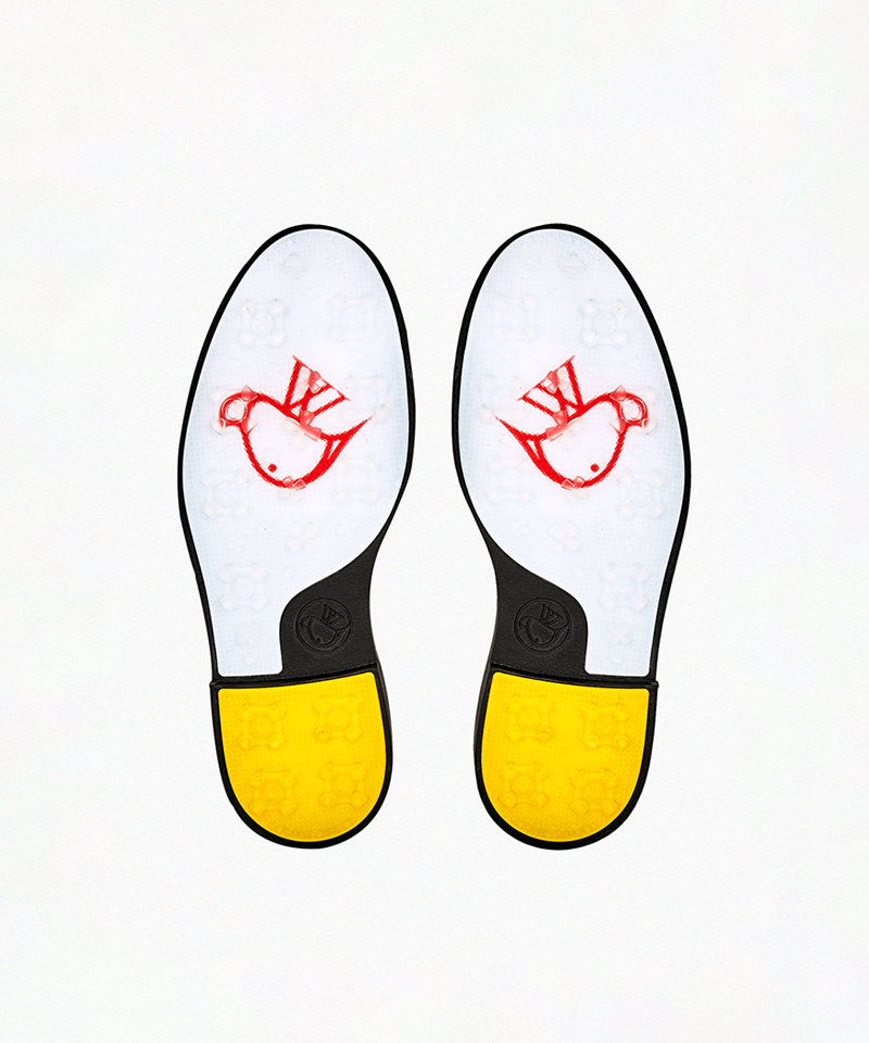 These classic golf shoes from AVVES are ergonomically designed in collaboration with a traditional British shoemaker, blending timeless craftsmanship with athletic functionality. Exquisitely crafted from natural calfskin, they are water-resistant and accented with polished enamel detailing on the front and back for an elevated, refined look. The uniquely developed outsole not only complements the sleek silhouette but also provides exceptional grip and swing stability on the course. Inspired by the vibrant colors of birds, this design captures sophistication and performance in equal measure. Step into superior comfort with AVVES.