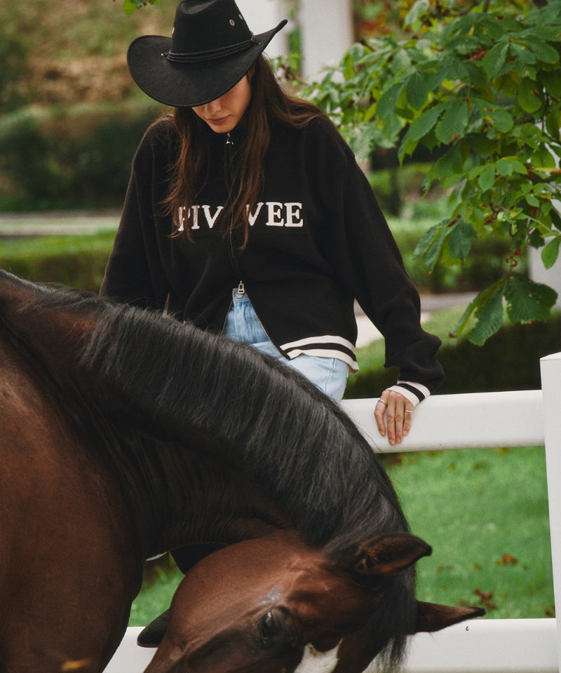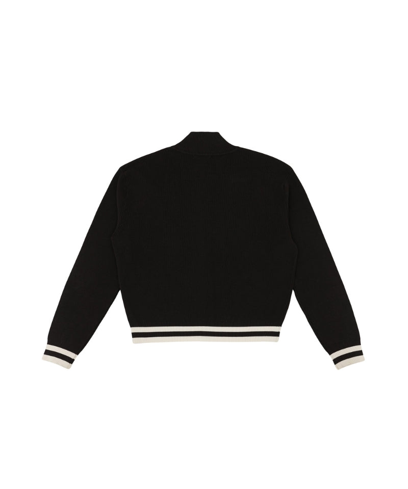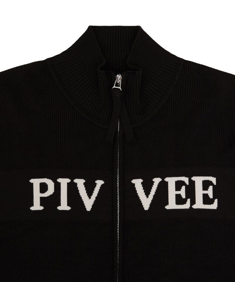 Logo Jacquard Knit Zip-up Cardigan Ebony Black