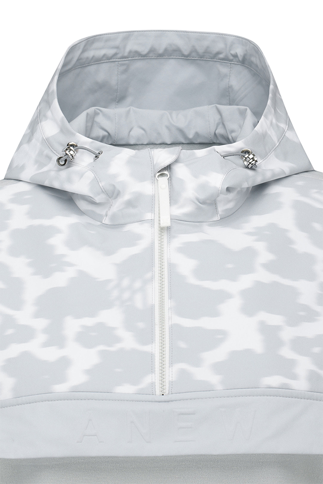 This hybrid hoodie sweater, designed for transitional seasons, offers a comfortable fit with its lightweight, breathable, and stretchable functional yarn. The smooth inner lining ensures ease of movement, making it ideal for active or casual wear. Featuring seasonal patterns for a sporty yet stylish look, it also highlights brand identity with the ‘ANEW’ logo artwork on the front pocket. It pairs effortlessly with the AGFPWHP51 bottoms to create a cohesive, coordinated outfit.
