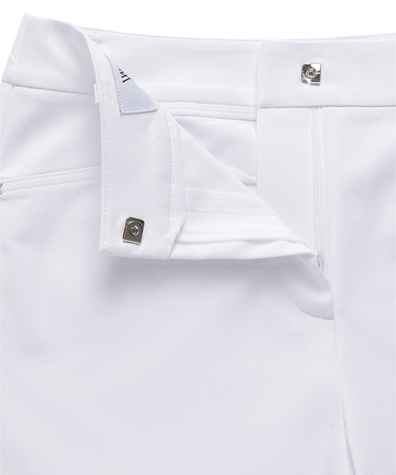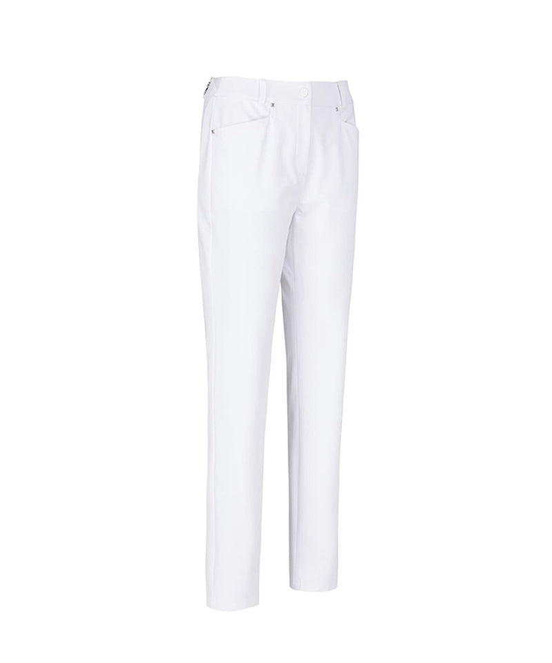 These are standard pants with studs on the pockets. The waist band makes them more comfortable to wear, and they are easy to layer with various items. The back belt loop has a metal logo ring, making them simple yet casual.