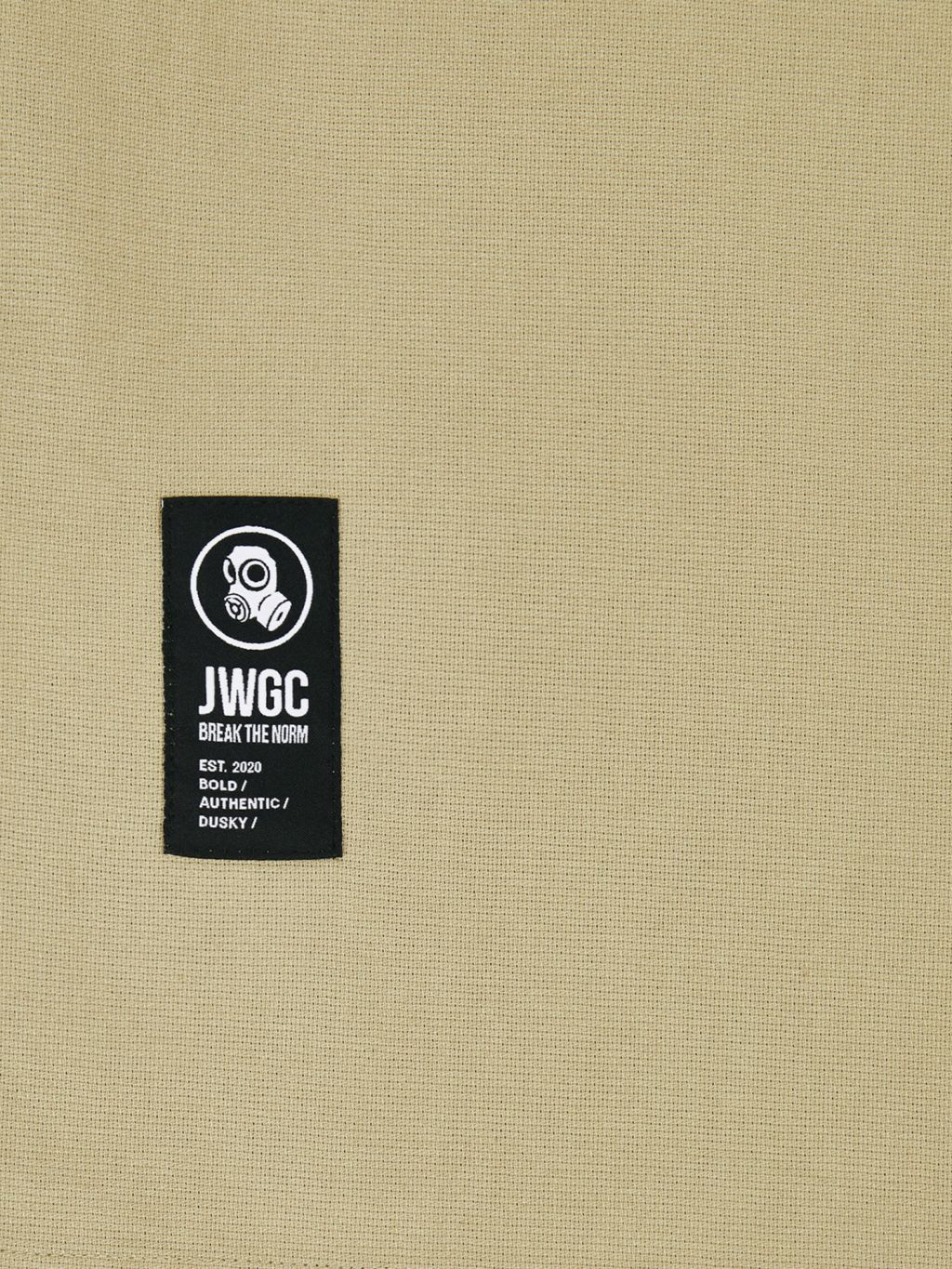 Step up your style game with the Jamie West JWGC Lettering Open Collar Set-up Shirt in sleek Beige. Its open collar design keeps things cool and casual, while the bold lettering adds a fun, confident edge. Perfect for days when you want to feel relaxed but still turn heads with effortless charm.