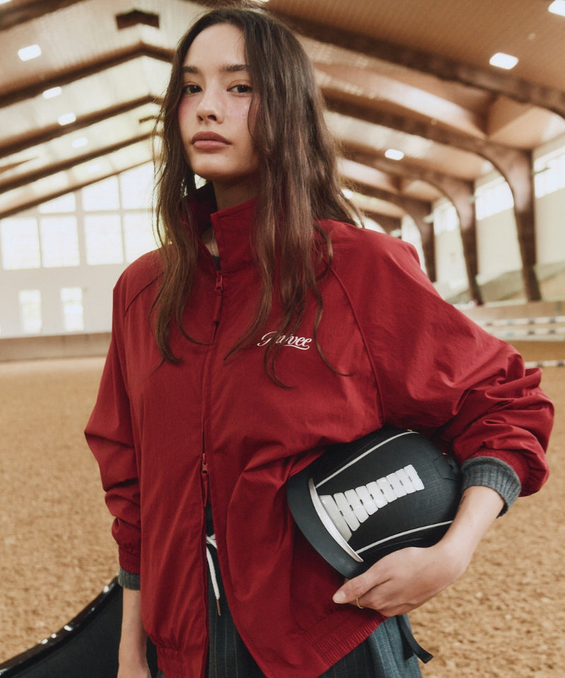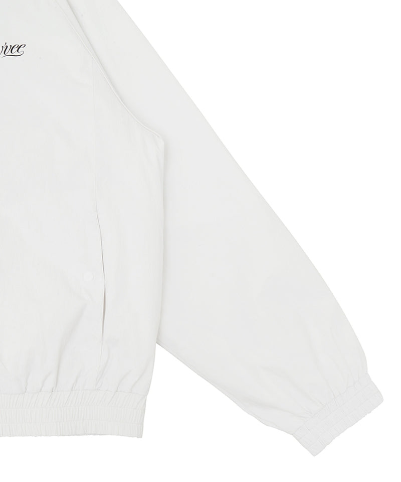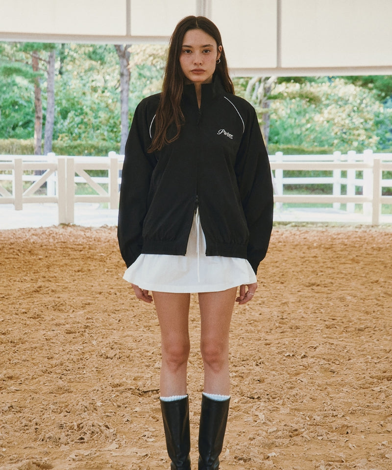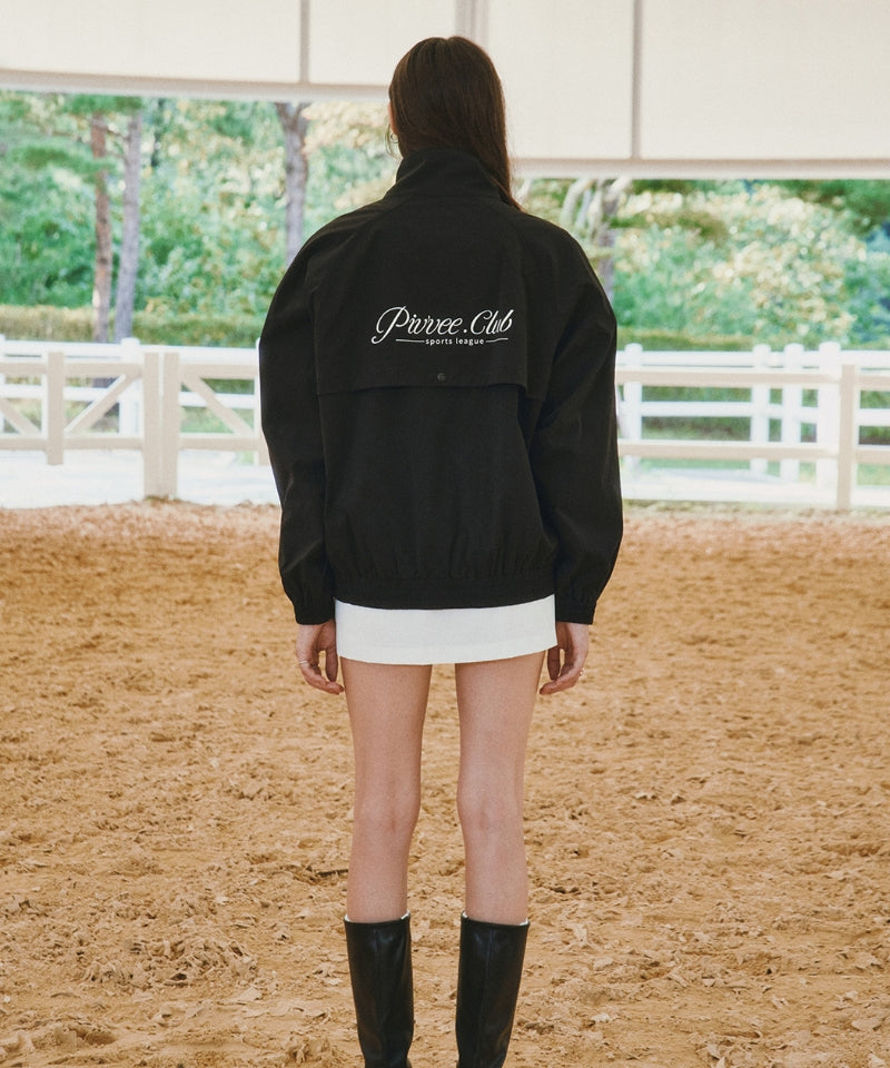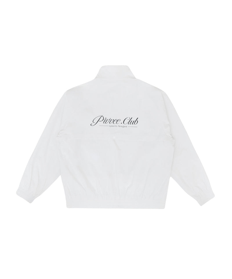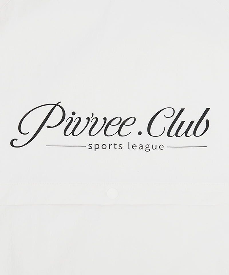 This oversized raglan windbreaker is crafted from a durable yet lightweight nylon-cotton blend, ensuring lasting wear. The neck interior features soft polar fleece for enhanced warmth, complemented by piping detail along the raglan seams. The front showcases the Piv'vee lettering, while the back bears the Piv'vee Club print. Equipped with a two-way zipper, snap button accents, and banded sleeve hems, it offers versatility and style. Practical side pockets are adorned with the embossed Piv'vee logo for subtle branding. Made from 95% nylon and 5% spandex outer shell with polyester lining, this sporty jacket effortlessly combines function and casual elegance.