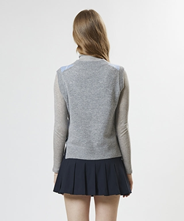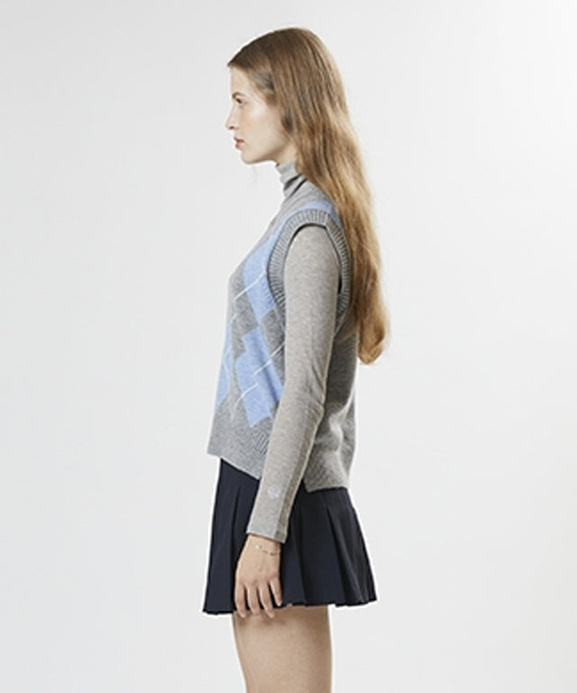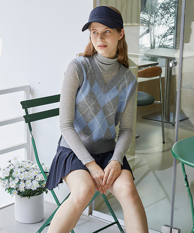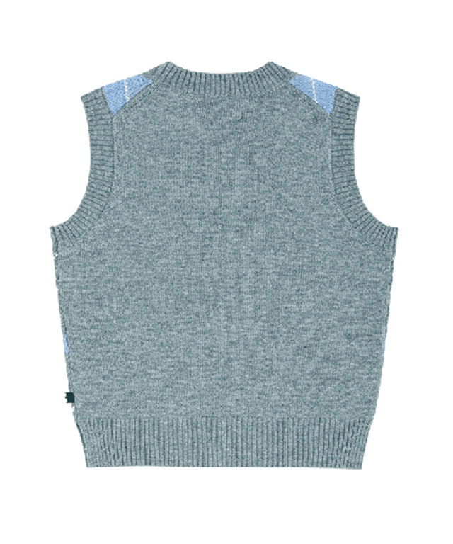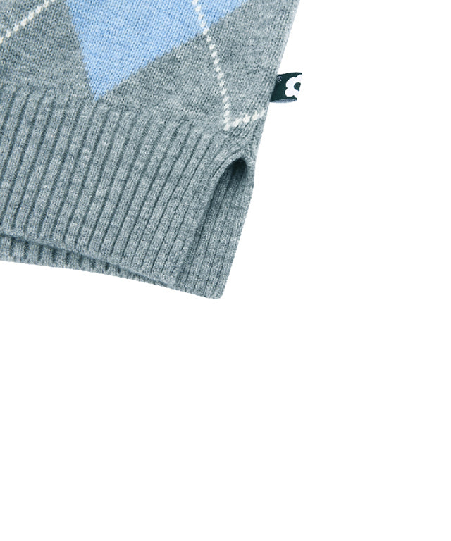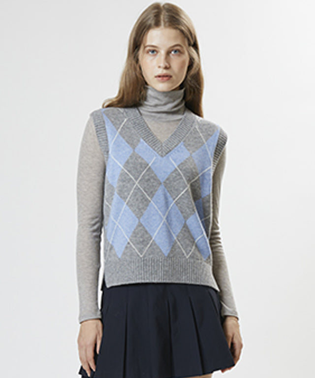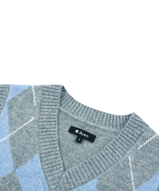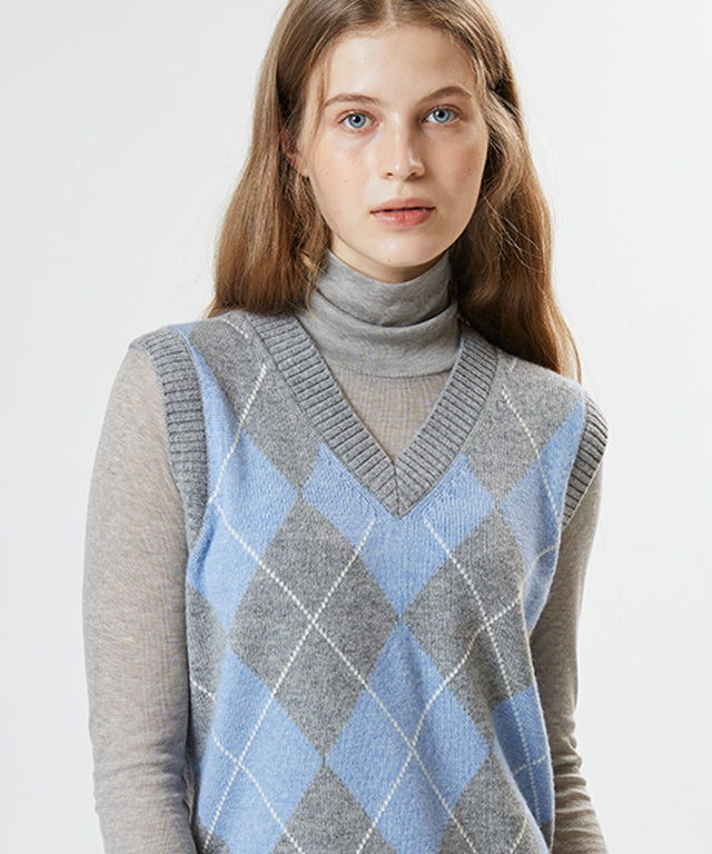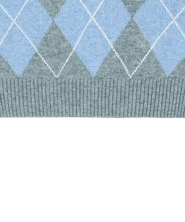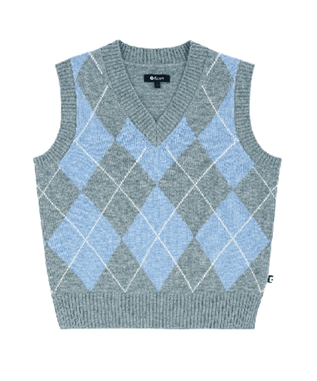 This is a classic knit vest with an argyle pattern and impactful color combination.