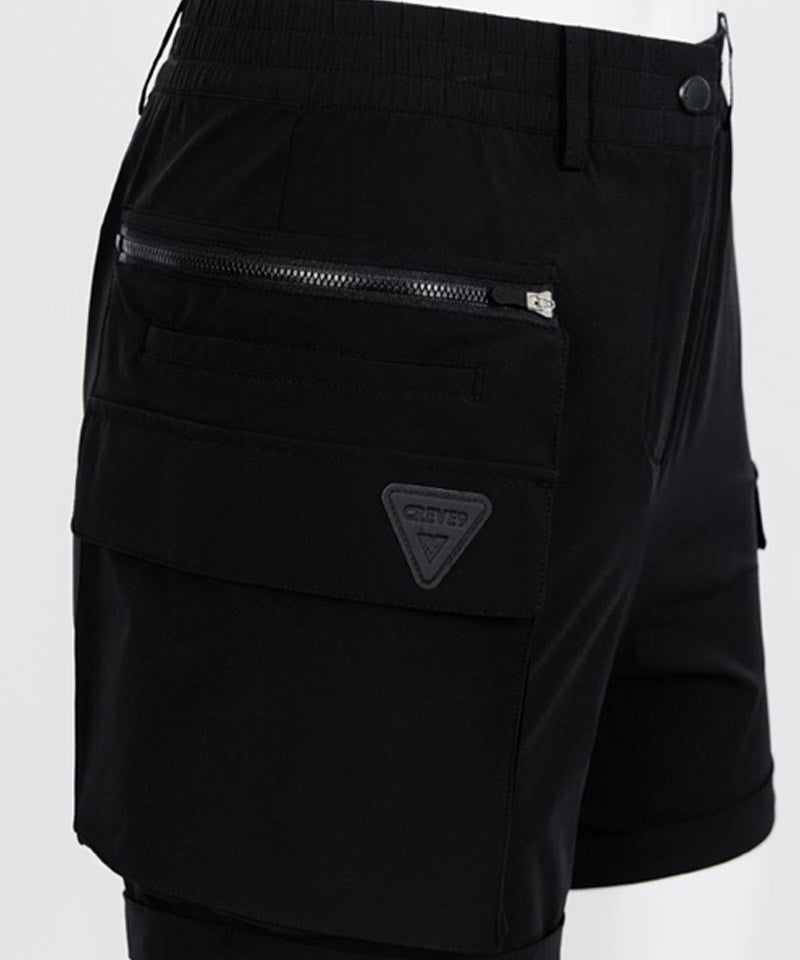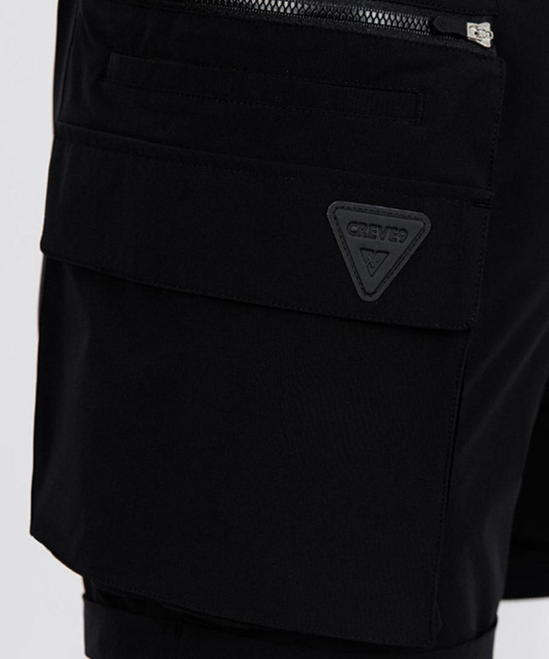 CREVE NINE: Multi-Pocket Point Anorak Shorts - Black