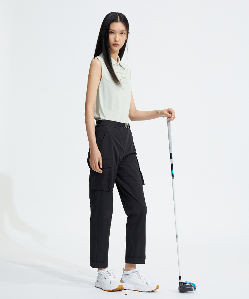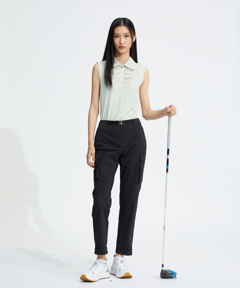 These black golf pants offer a slim, straight fit that flatters all body types. Made from a nylon-spandex blend, they provide stretch, a cool feel, and a refined finish. Featuring a detachable nylon belt with steel buckle and multiple pockets, they combine style with practical functionality. Lightweight and breathable, they are ideal for summer but suitable for spring and fall wear. Designed for comfort and versatility, these pants enhance your look while supporting your active lifestyle.