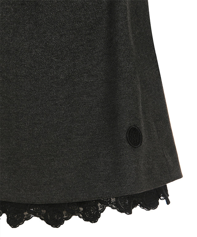Made of soft wool material that offers warmth and a beautiful silhouette. This skirt also has a comfortable fit at the waist and a soft flare line. A unique pleated detail stands out. The luxurious skirt is also highlighted by lace details on the underskirt and hem with a 2.5 cm front/back crotch difference that provides stability when swinging.