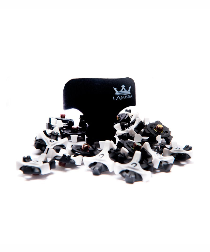 Lambda spikes are non-clogging and made with a soft durometer TPU for superior comfort and durability.