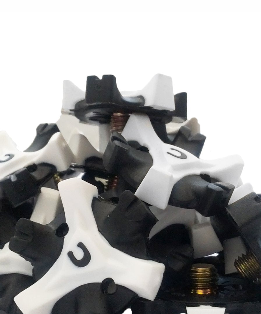 Primary spring-flex traction elements provide the optimum gripping ability and a green-friendly design minimizes marks on the green.