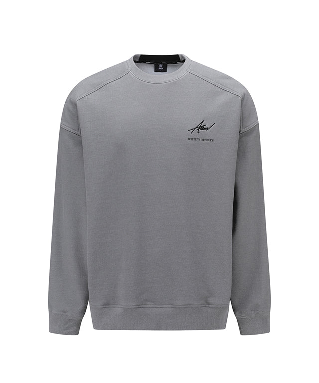 A man-to-man T-shirt in a subtle color with natural pigment dyeing. Comfortable to wear with a loose fit and intense with lettering embroidery on the front plate and big logo embroidery on the back plate. An item that represents the brand identity. As a unisex item