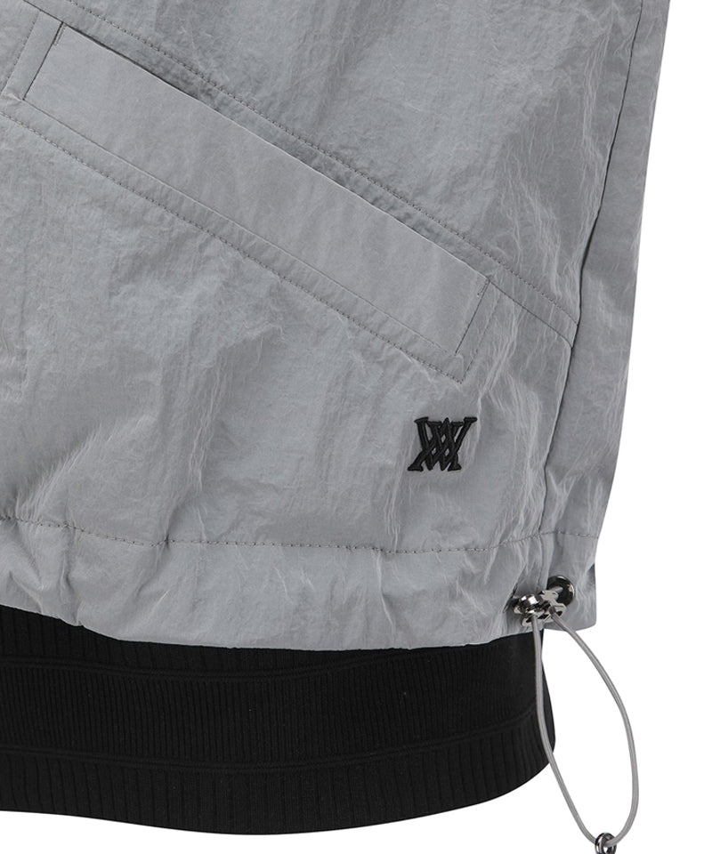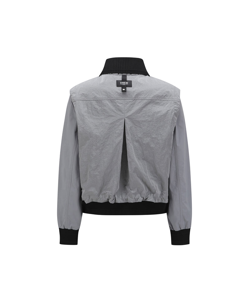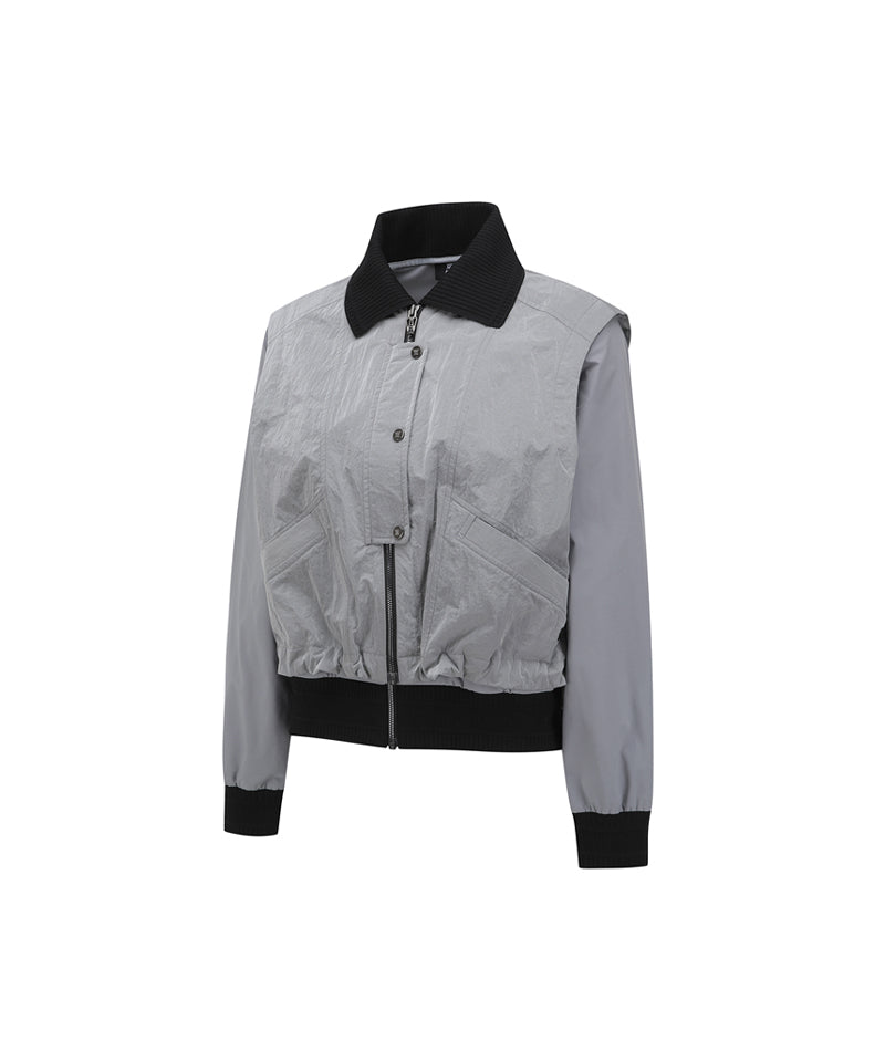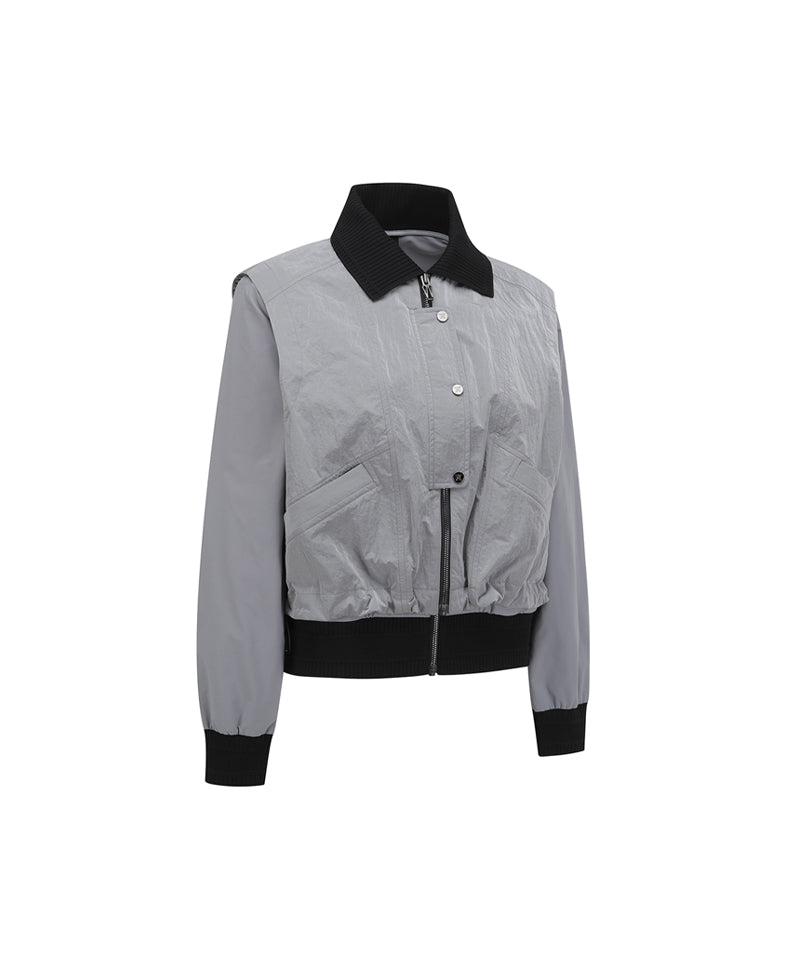 This is a 2-in-1 jacket. The outer part can be worn separately as a vest, and the string at the bottom can be adjusted to your preference. The inner part has a wide neckline rib for a feminine detail, and the sleeves and hem have the same type of rib so that it can be worn to fit your body type.