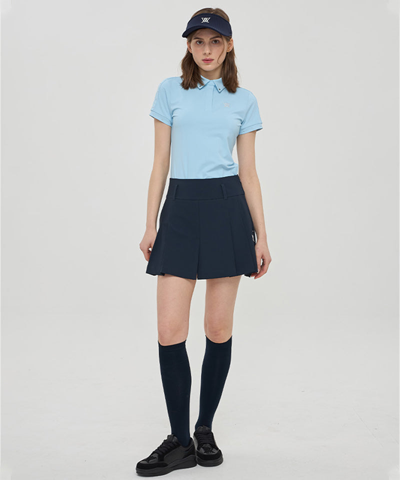 These are skirt-like half pants with plentiful pleats on the front and back. Half style with wide pants underneath the wrap-style skirt on the outside. You can wear it more comfortably with pants. The length difference of 2 cm between the front and back allows you to enjoy it comfortably not only when swinging but also in everyday life.