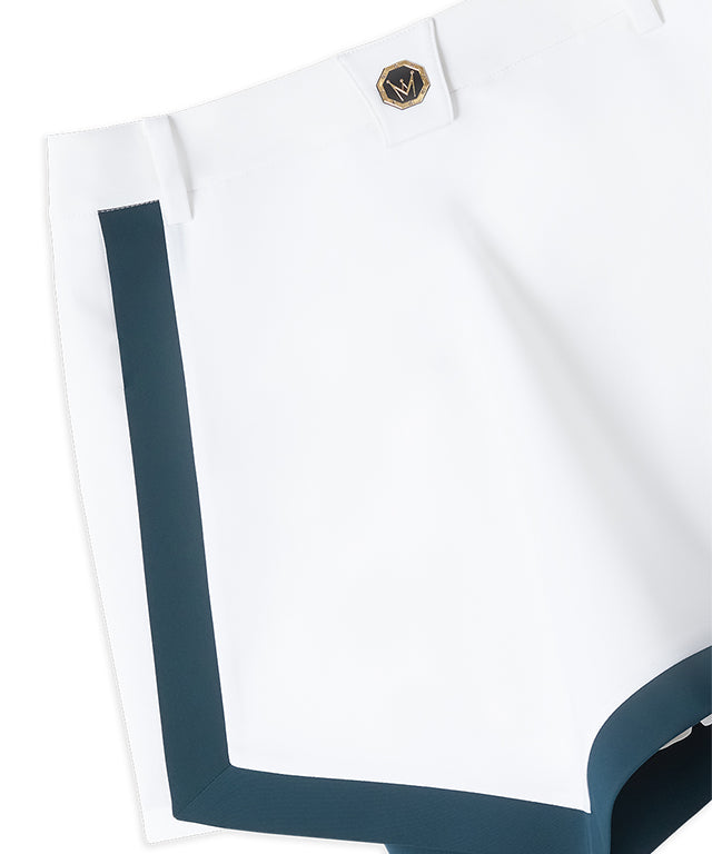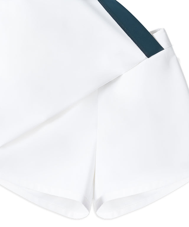 Imported premium material with flexible fit and resistance to wrinkles. Simple short pants with flare wrap. An item that can be styled from fairway to everyday life.