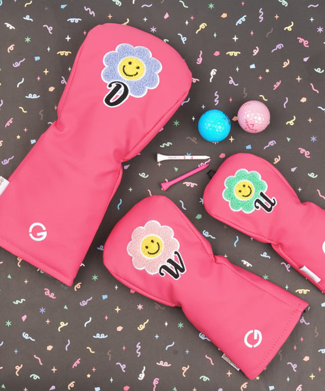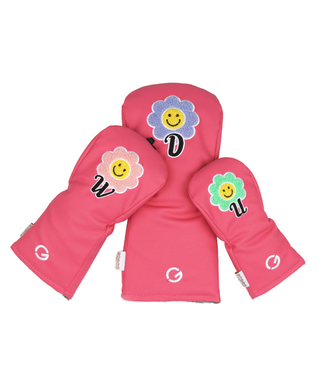 The Pink Club Headcover featuring Corliss Golf. Colorful Boucle embroidery point design