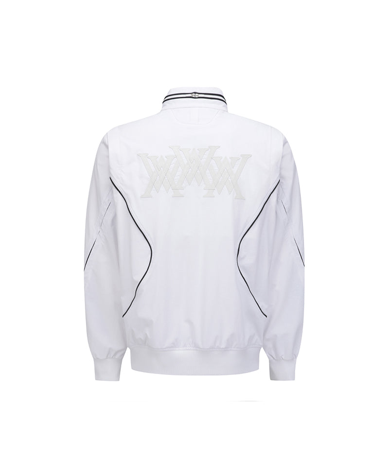 A piping jacket in an impactful printed fabric. The back panel has a mesh tunnel for a comfortable swing. It has a piping collar and logo patch for added emphasis. This is an item that allows for a stylish look.