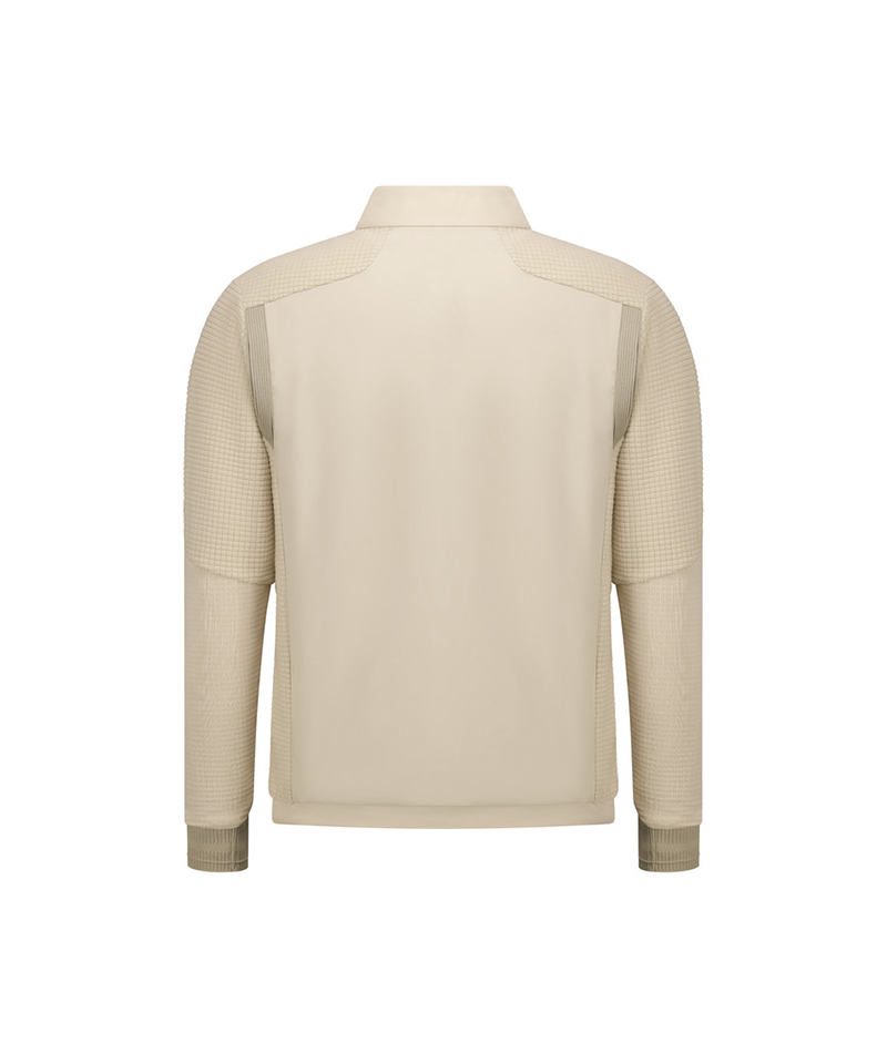 - Semi-zip hybrid t-shirt made of functional tech fleece material.