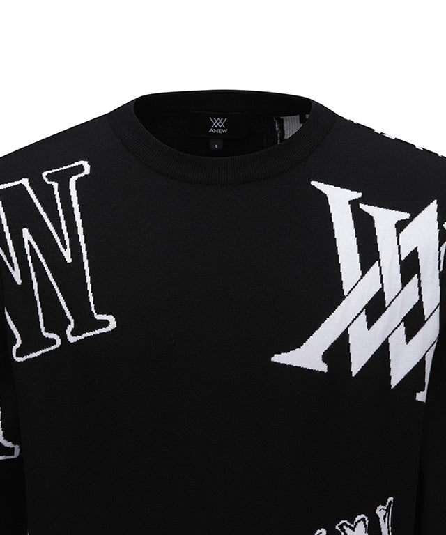 ANEW Golf: Men's Logo Intarsia Pullover - Black