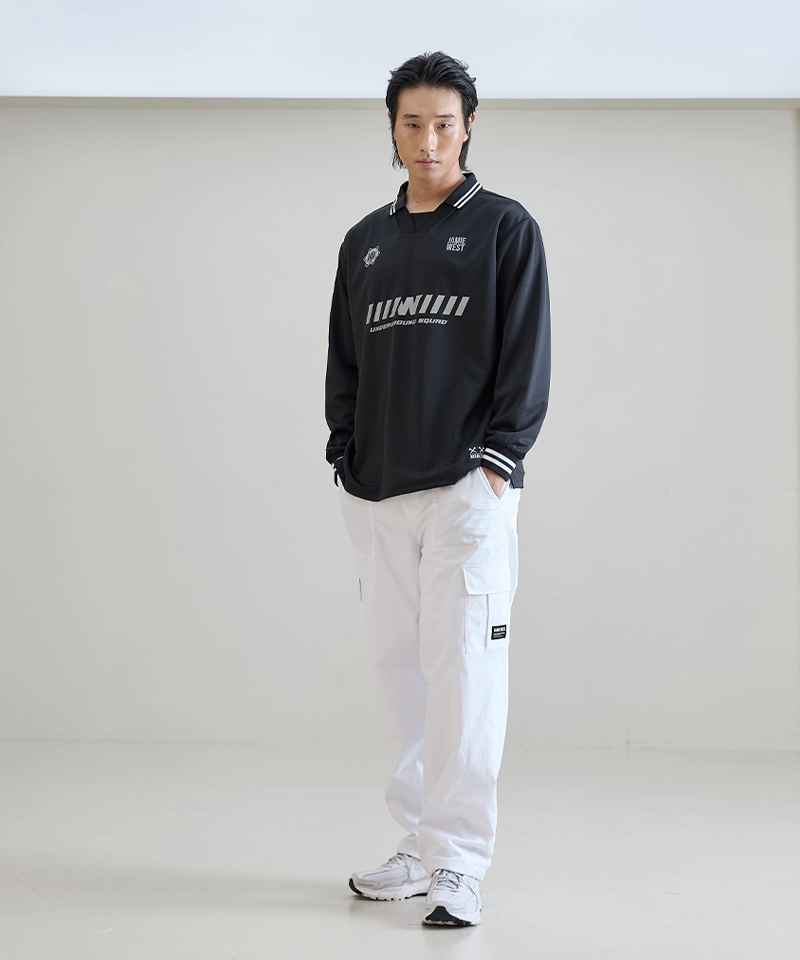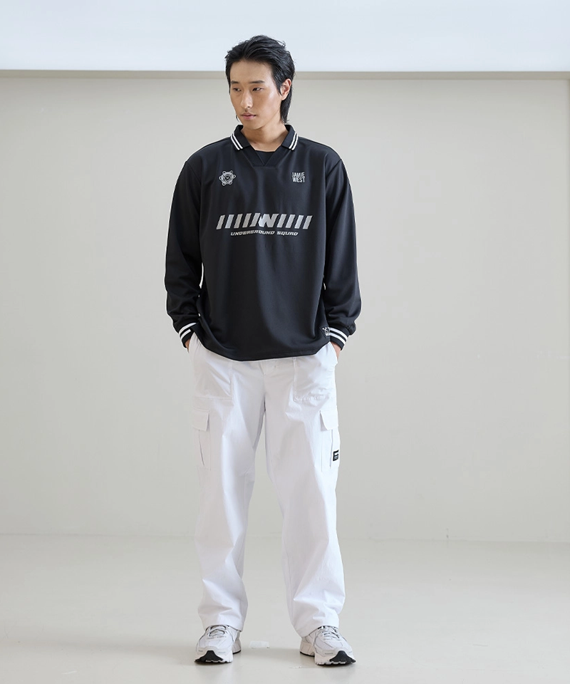 Elevate your casual wardrobe with the Jamie West AG Longsleeve Football P-Shirt in black. Crafted for a refined yet relaxed look, this shirt combines timeless football-inspired design with long sleeves for added versatility. Its sleek black hue offers effortless pairing with various styles, making it an essential piece for both day-to-night wear. Experience comfort seamlessly blended with understated sophistication.