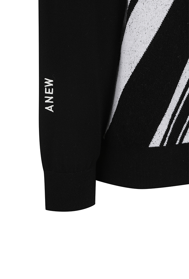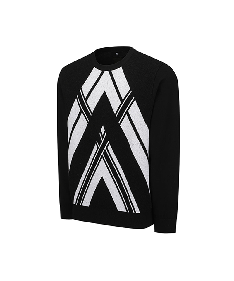 Men's Line Point Round Sweater - Black