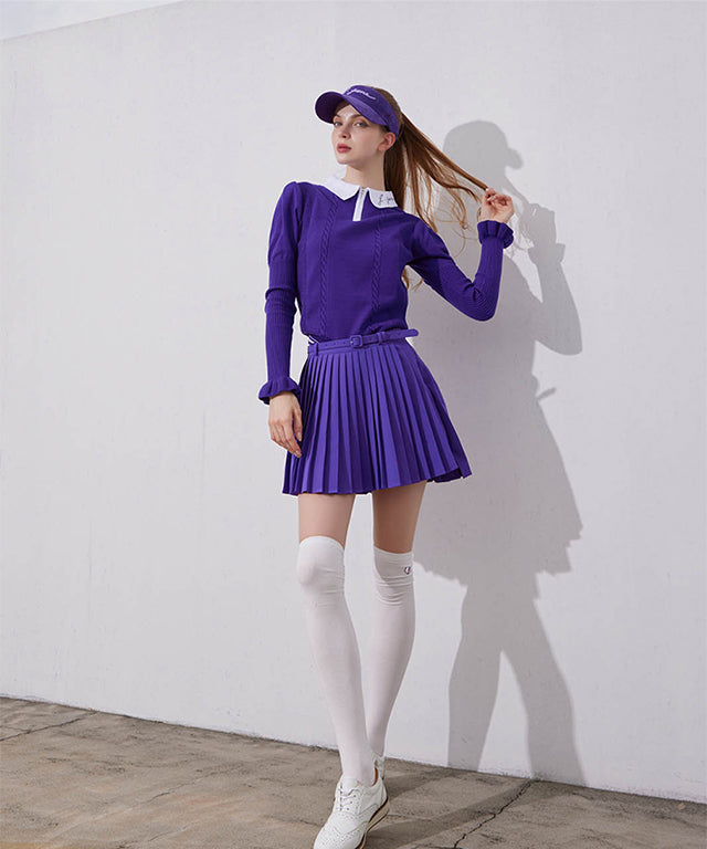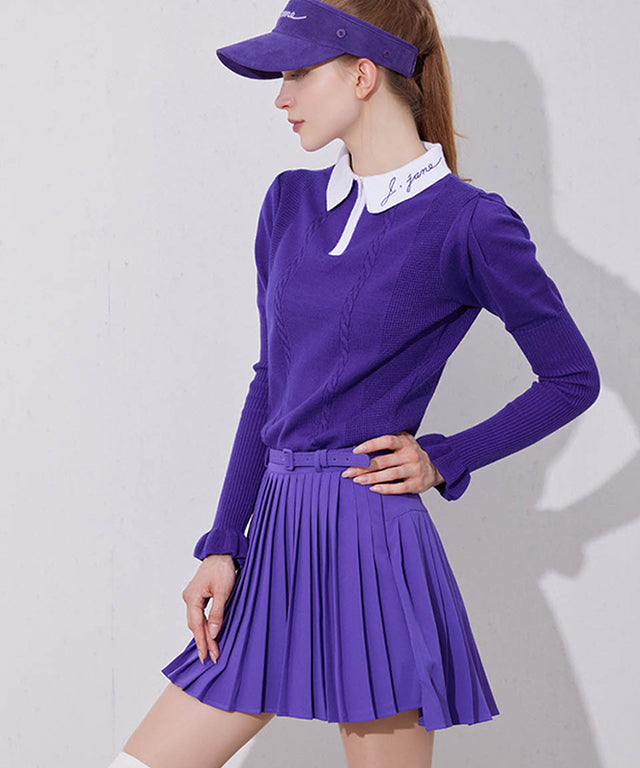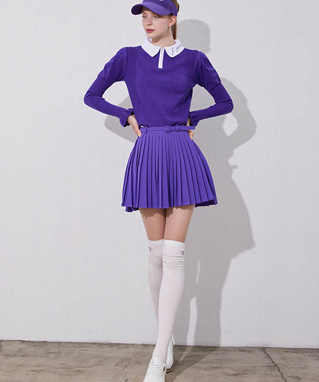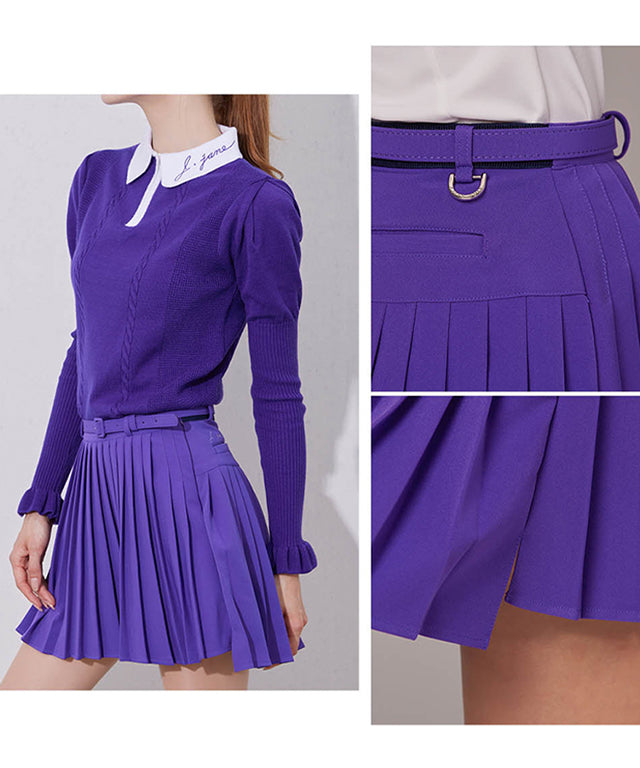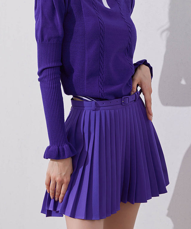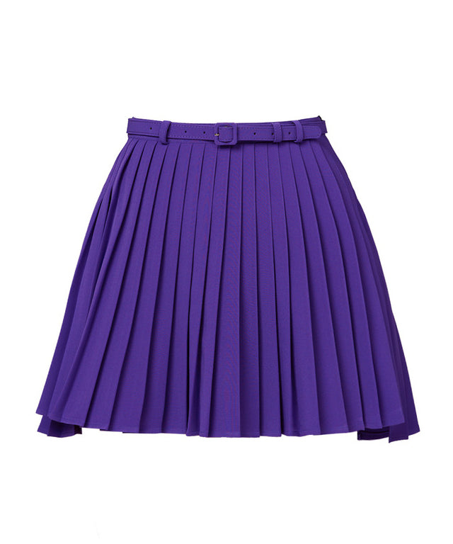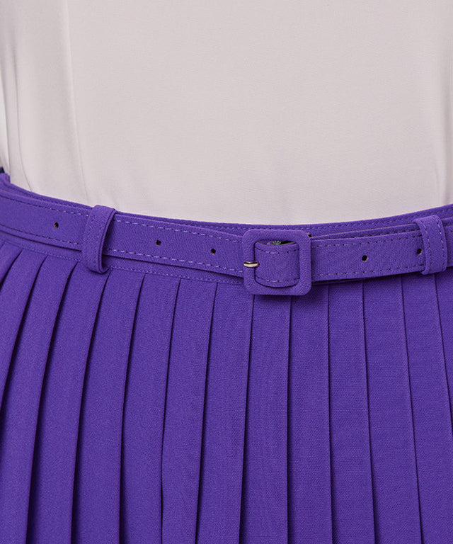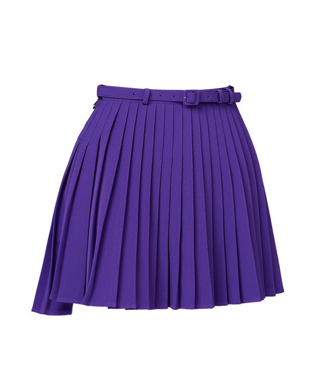 J.Jane Unbalanced Belt Pleats Skirt - Purple
