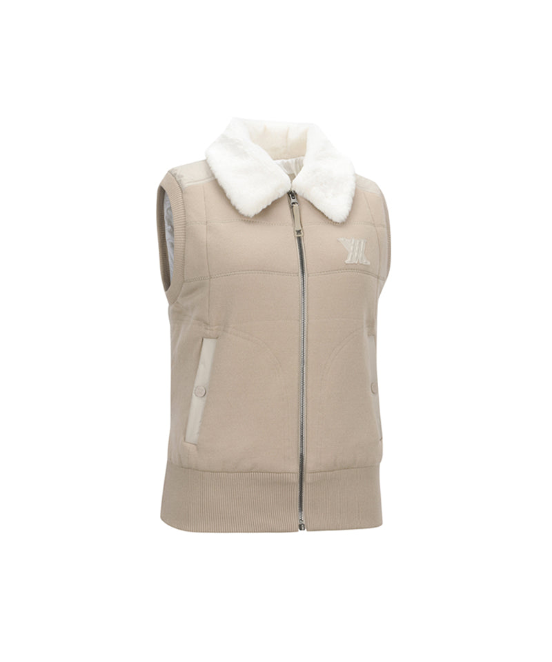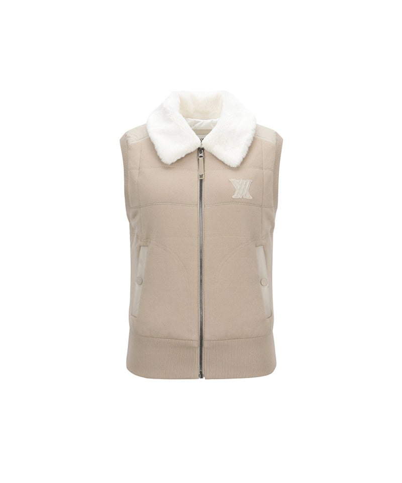 ANEW Golf Women's Fake Fur Collar Hybrid Down Vest - Light Beige