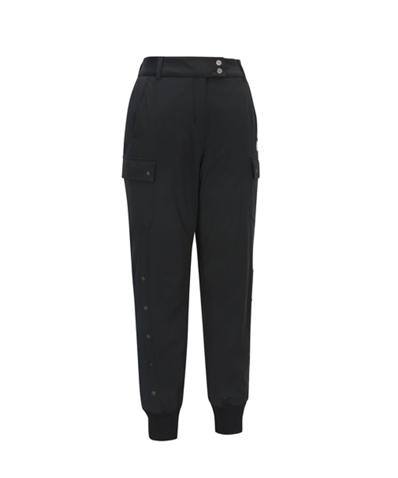 These jogger pants are made of Shinsul, one of the filling materials, and are lightweight and comfortable to wear. The silhouette is made slim by using 1.8oz Shinsul, and it boasts high heat retention. The wide band on the waist and the rib on the bottom provide a comfortable fit, and the outer pockets on both thighs allow for casual wear.