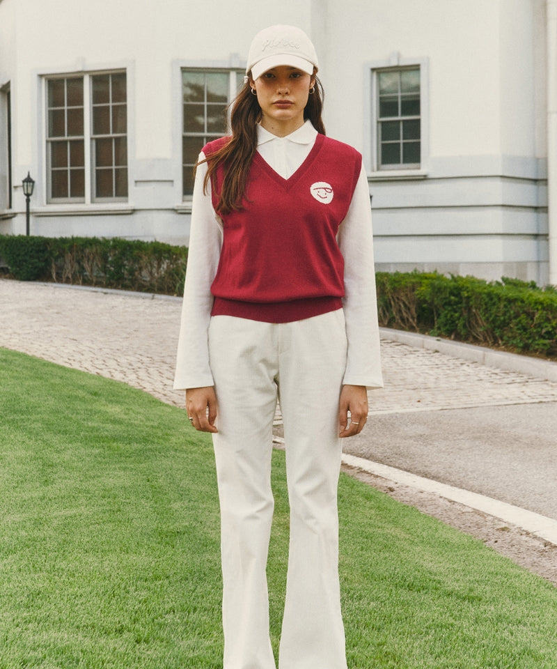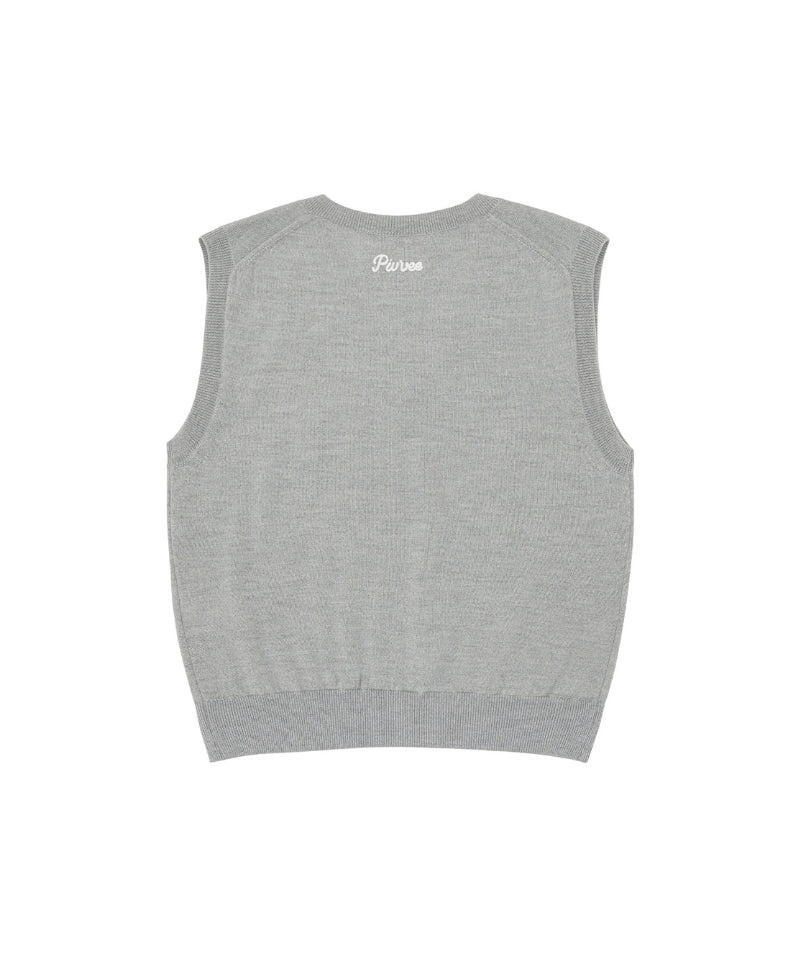 This V-neck knit vest is crafted from cozy wool, ensuring a comfortable and durable wear. Its V-neck design offers a timeless and elegant appearance. The front features a subtle PvB logo jacquard, while the back is adorned with embroidered PvB lettering. With its classic style, this versatile piece pairs seamlessly with a variety of bottoms. Made from 100% wool in Korea.