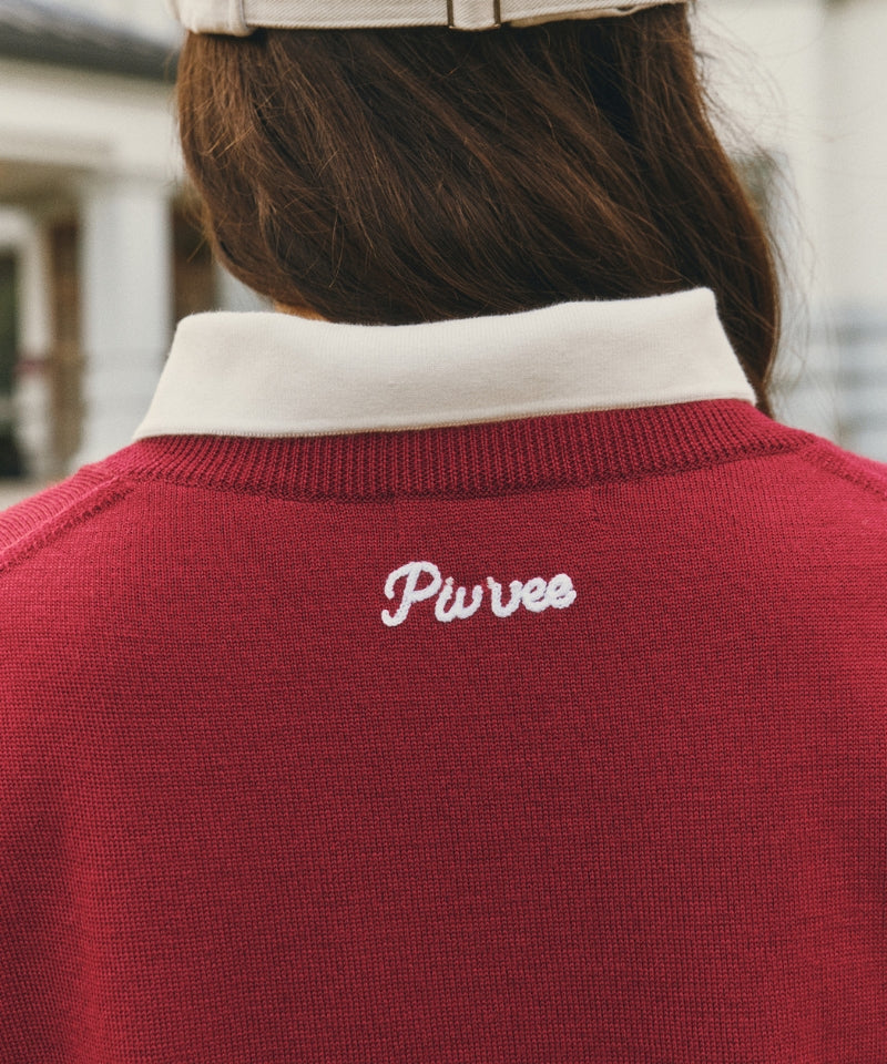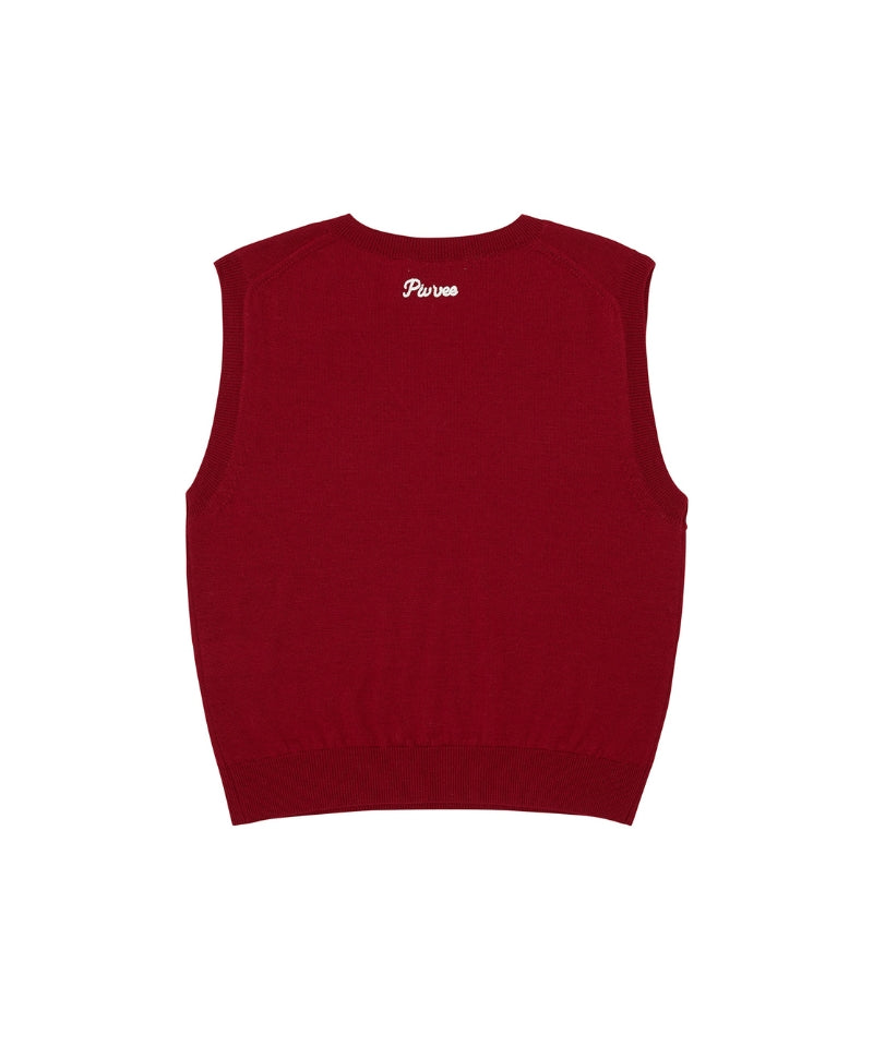 This knit vest features a V-neck design crafted from warm wool, ensuring a cozy and refined fit. The front showcases a subtle PvB logo jacquard, while the back is adorned with embroidered PvB lettering, adding elegant details. Its classic style allows effortless pairing with a range of bottoms, making it a timeless and versatile wardrobe piece. Made in Korea from 100% wool.