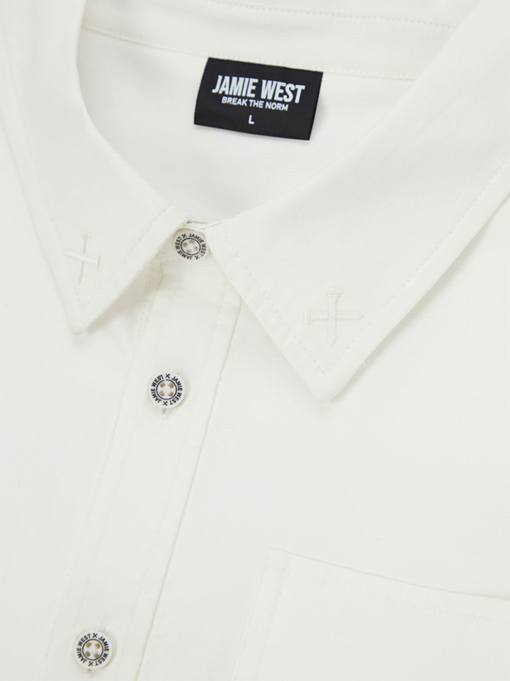 Elevate your casual style with the Jamie West Men's Woven Pocket Shirt in crisp white. Lightweight and breathable, this shirt keeps you cool while the classic woven fabric adds a touch of texture. The handy chest pocket is perfect for stashing small essentials or striking a pose. Whether you're out for brunch or lounging with friends, this shirt blends comfort with a subtle edge that’s ready for any adventure.