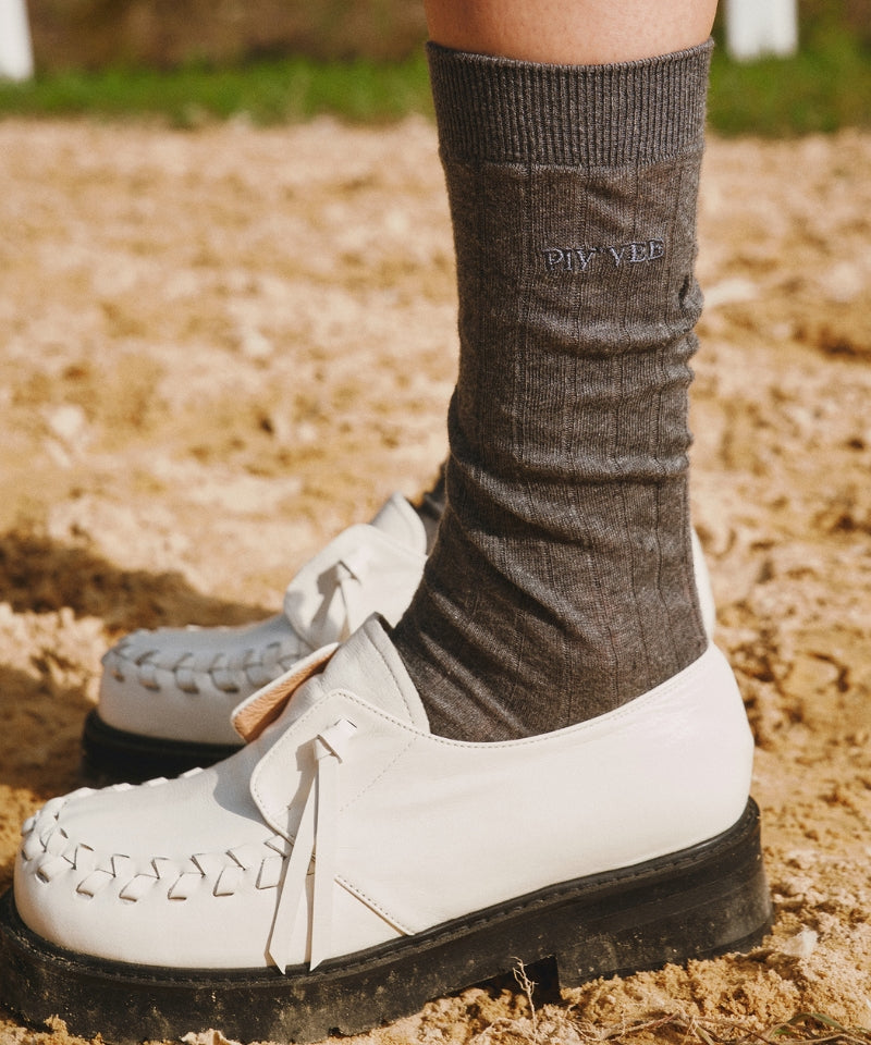 These long sheer socks feature a delicate, translucent texture and a subtle PB logo embroidered at the ankle. Designed in a warm hue, they complement a wide range of outfits with elegant ease. Crafted from 90% cotton, 9% polyester, and 1% polyurethane, they offer comfort and durability. Made in Korea.