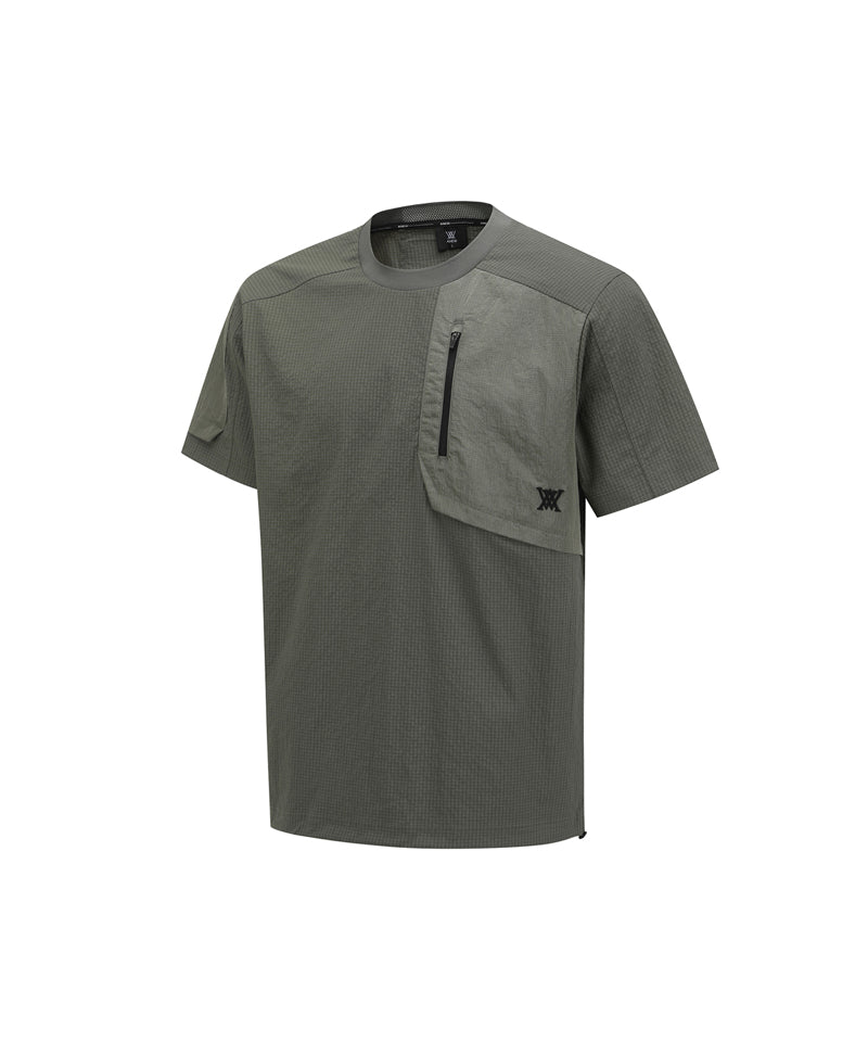 ANEW GOLF Men's SM Wooven Round Short T-Shirt - Light Khaki