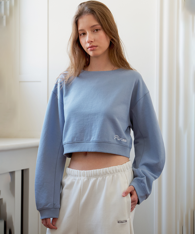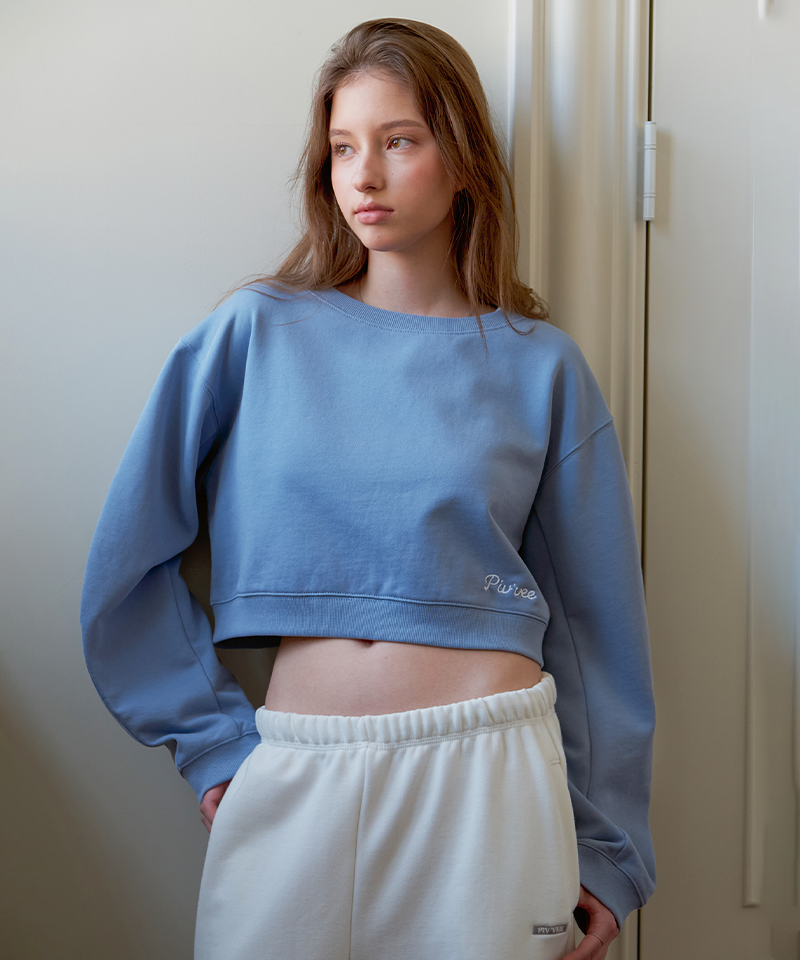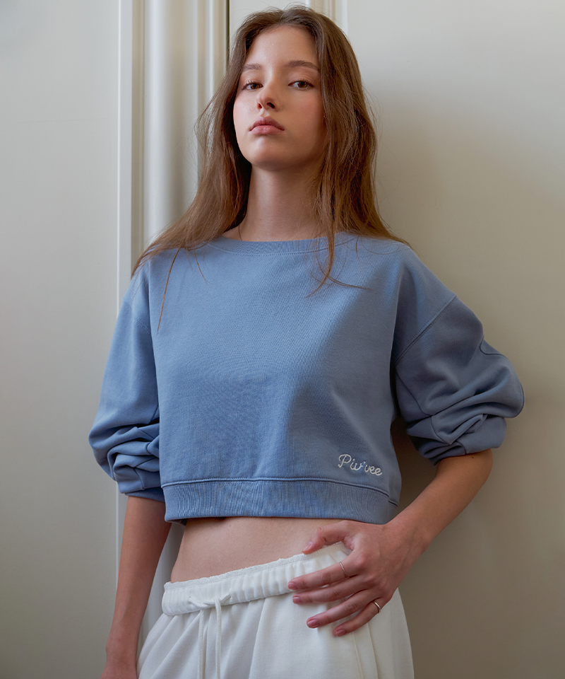 This boat neck sweatshirt features pigment-dyed fabric for a timeless vintage feel. Cut in a cropped silhouette with a subtle PvB logo chain embroidery at the lower front, it showcases voluminous balloon sleeves that balance casual ease with feminine elegance. Crafted from 100% cotton, it serves as a versatile staple, perfect worn alone or layered. Made in Korea.