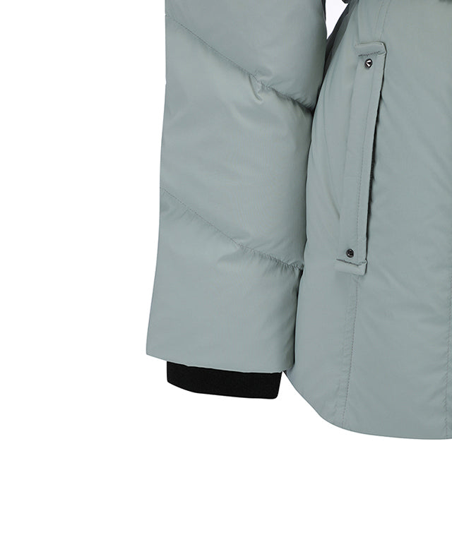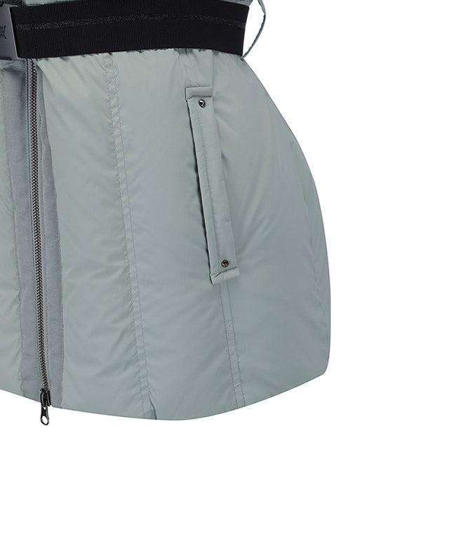 This is a goose down jumper with a polymer length that uses a quilting mix with a stylish shape. The waist belt and Eri wool knit are removable, allowing for a feminine look, and the luxurious lining specifications allow for a variety of looks in the field and everyday life.