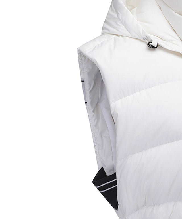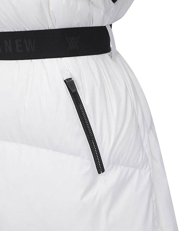 This is a long-length vest with excellent thermal insulation and goose filling. The logo jacquard on the back adds to the unique stylish look of the new, and the two-way zipper makes it convenient to wear even if it is long in length. The waist logo belt allows for a variety of looks, has the effect of making the waist look slimmer, and the hood is removable, so it can be used in the field and daily life. It is possible to produce it. There is fake fur on the Erian side, which has the effect of wrapping the neck warmly.