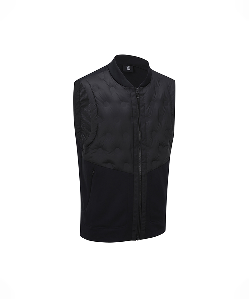 This lightweight vest is ideal for mid-season layering, designed with dot-shaped tube down on the front to provide a modern look and efficient insulation. Filled with premium 90/10 goose down, it offers superior warmth without added bulk. The back panel features stretchable jersey fabric, allowing for ease of movement and all-day comfort. Versatile and stylish, it pairs effortlessly with a variety of tops for both casual and active wear.