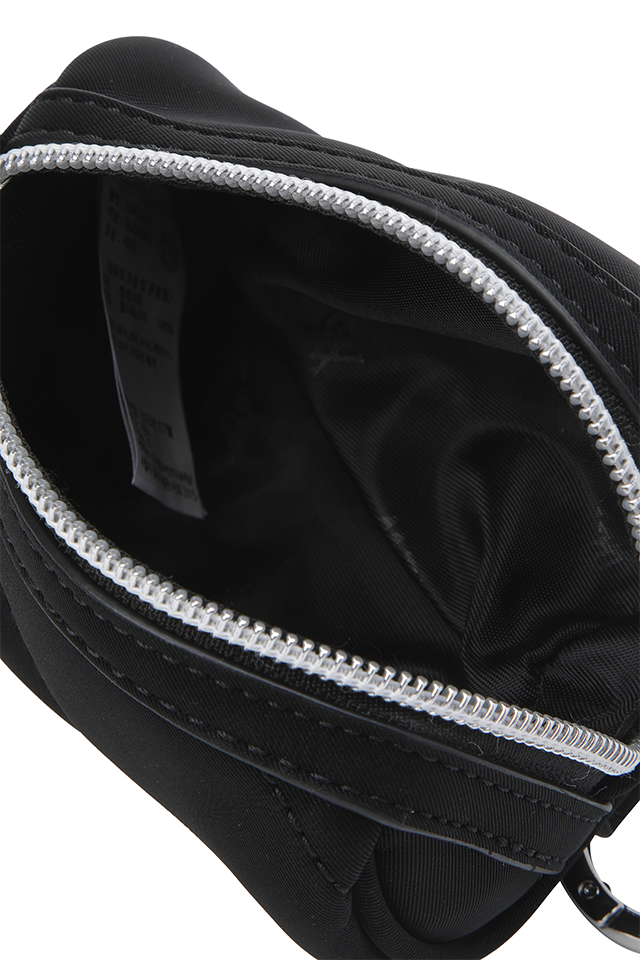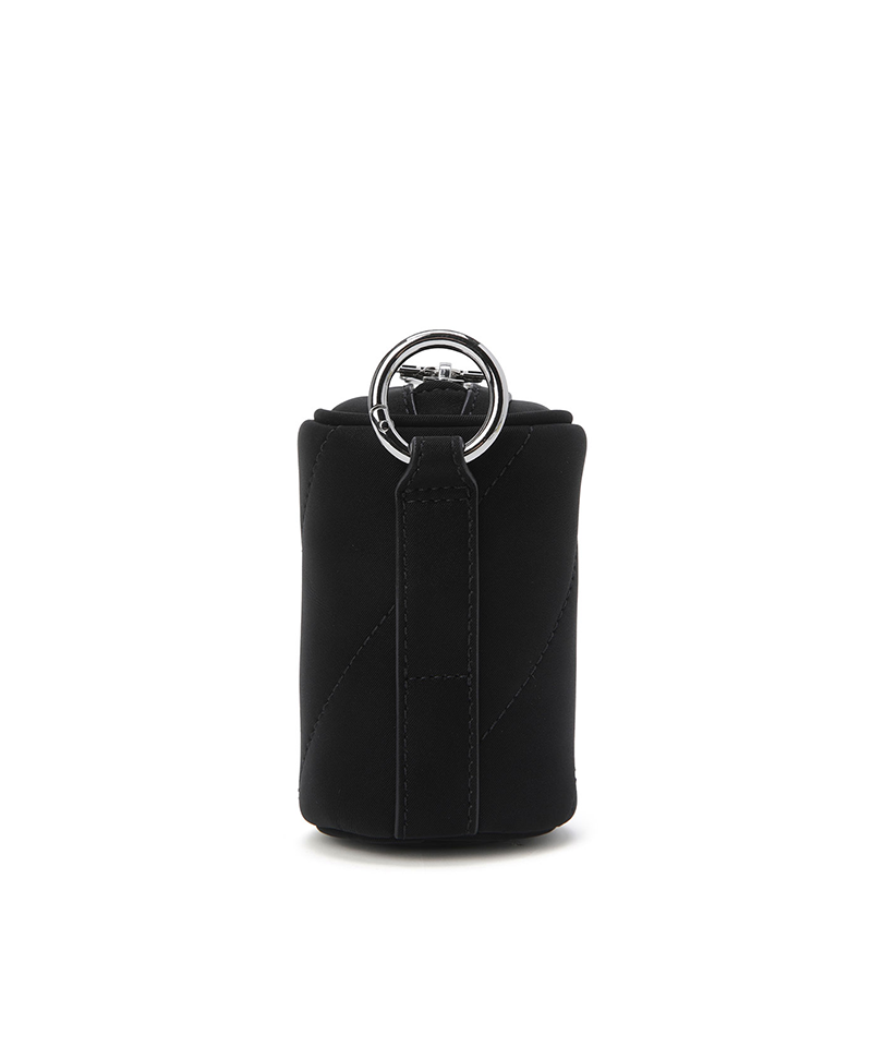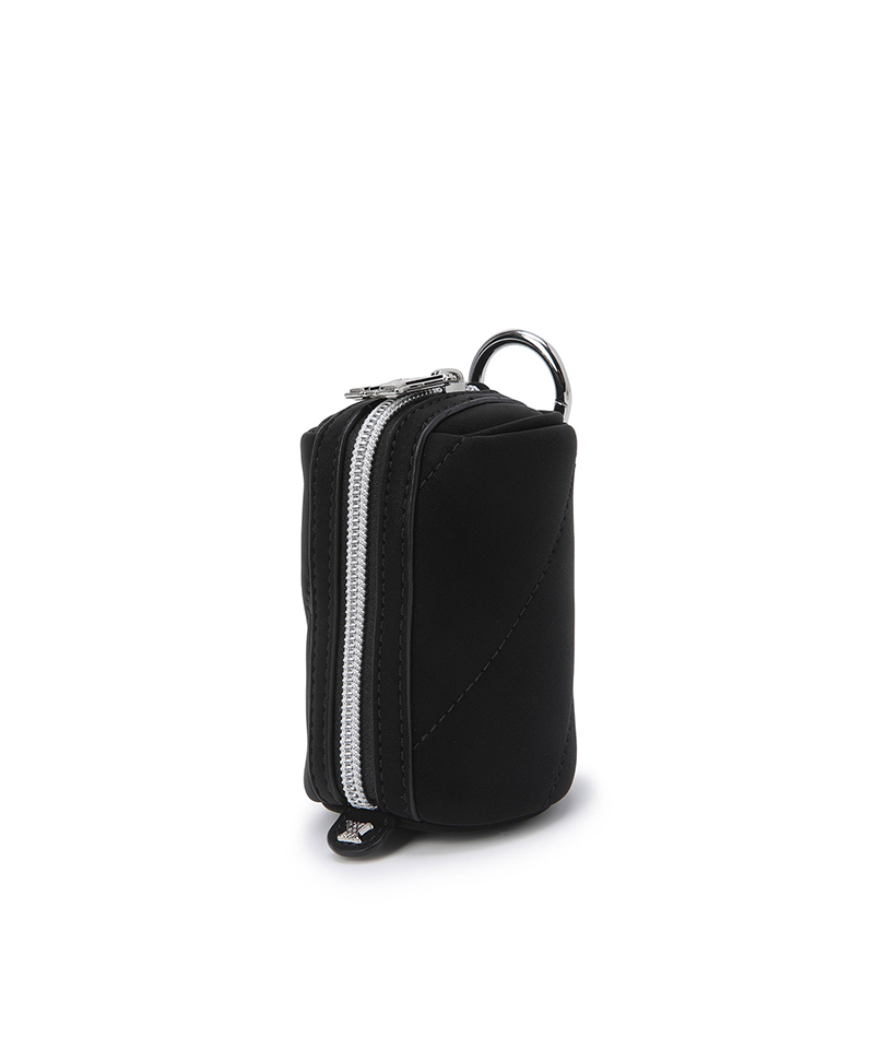 This is a 2-ball case featuring voluminous diagonal stitching and a luxurious logo on both pullers. The bottom is accented with a small logo and metal decoration, along with refined zipper details for a polished look. The back features a belt loop for convenient carrying, combining portability and practicality.
