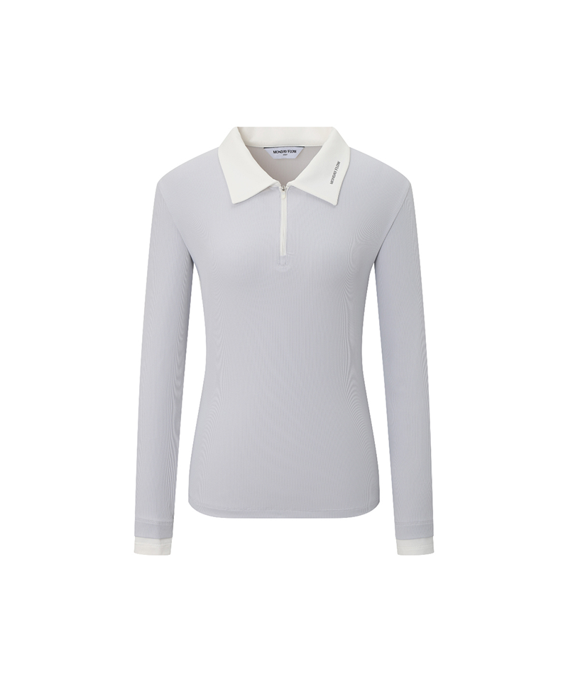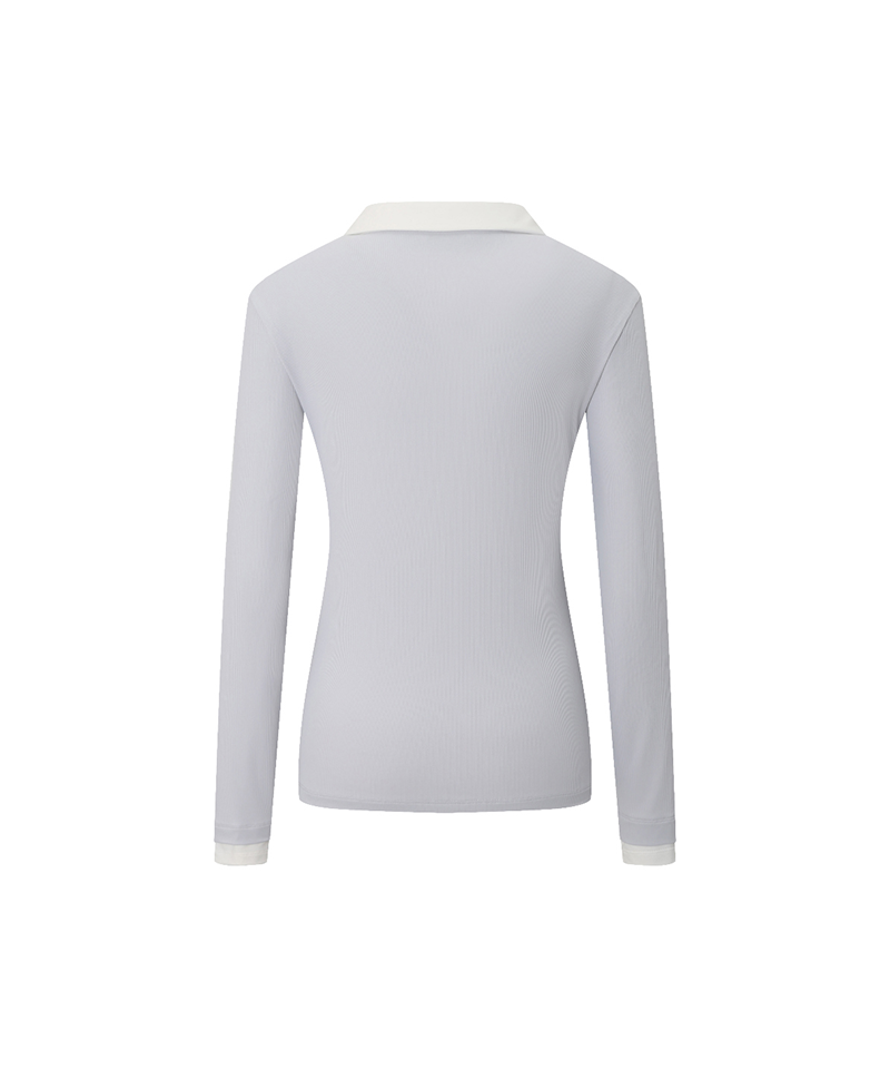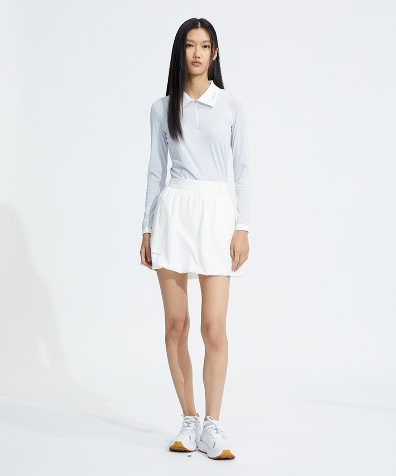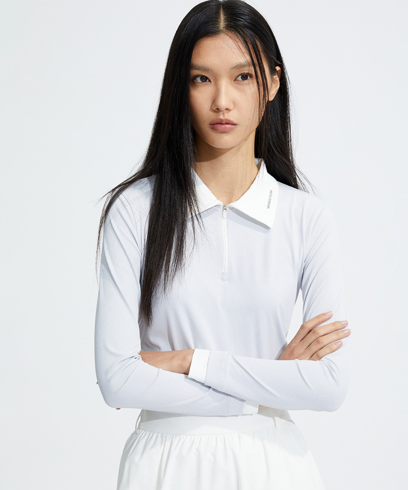 This functional long-sleeved golf top is designed with added details that make it stand out on and off the course. The subtle color matching on the collar and sleeves adds a refined, stylish touch, while the neat shirt collar gives a classic yet feminine feel. With a zipper closure, it’s easy to put on and take off, making it both practical and polished for active days.