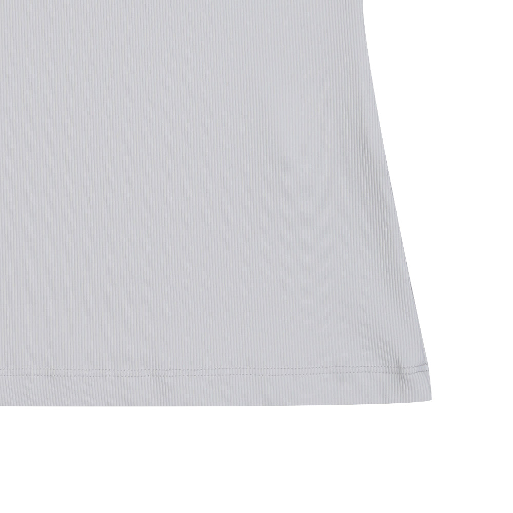 Made from a breathable stretch fabric with a fine bone texture, this top provides a smooth silhouette while helping reduce the visibility of the body underneath. It features a cool touch feel, UV protection, excellent stretch, and quick-drying properties—ideal for swinging comfortably from spring to fall. A go-to piece for functional style and ease on the green and beyond.